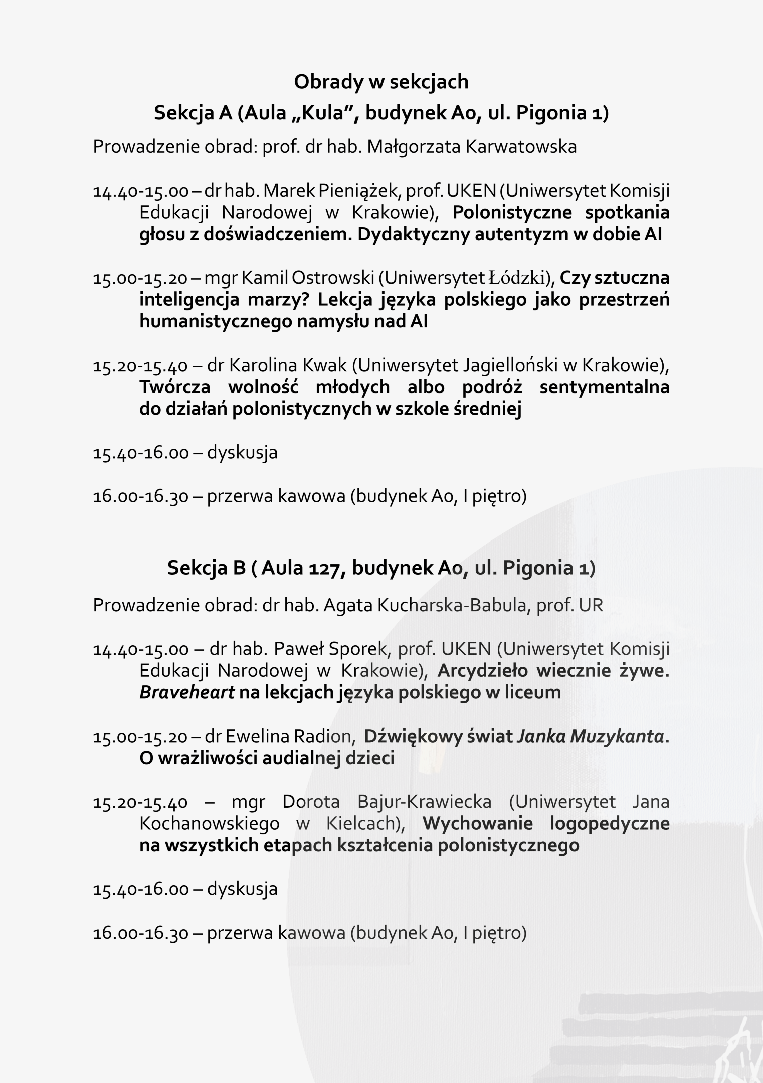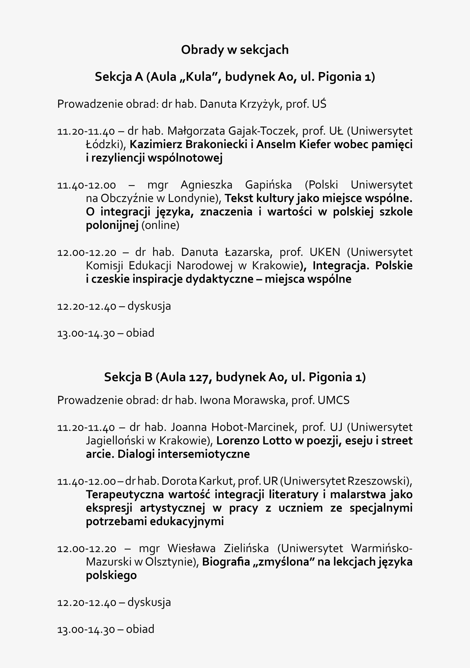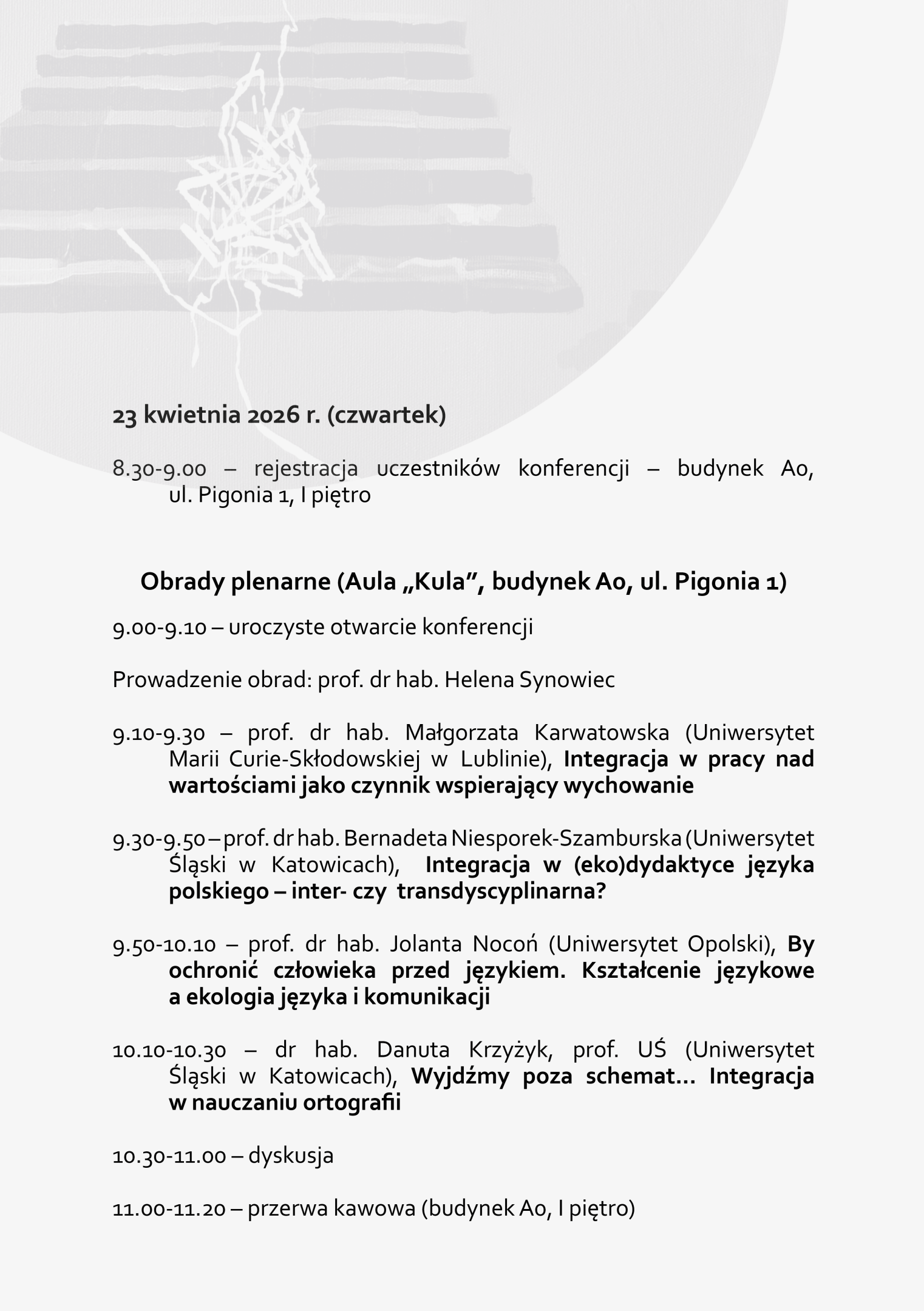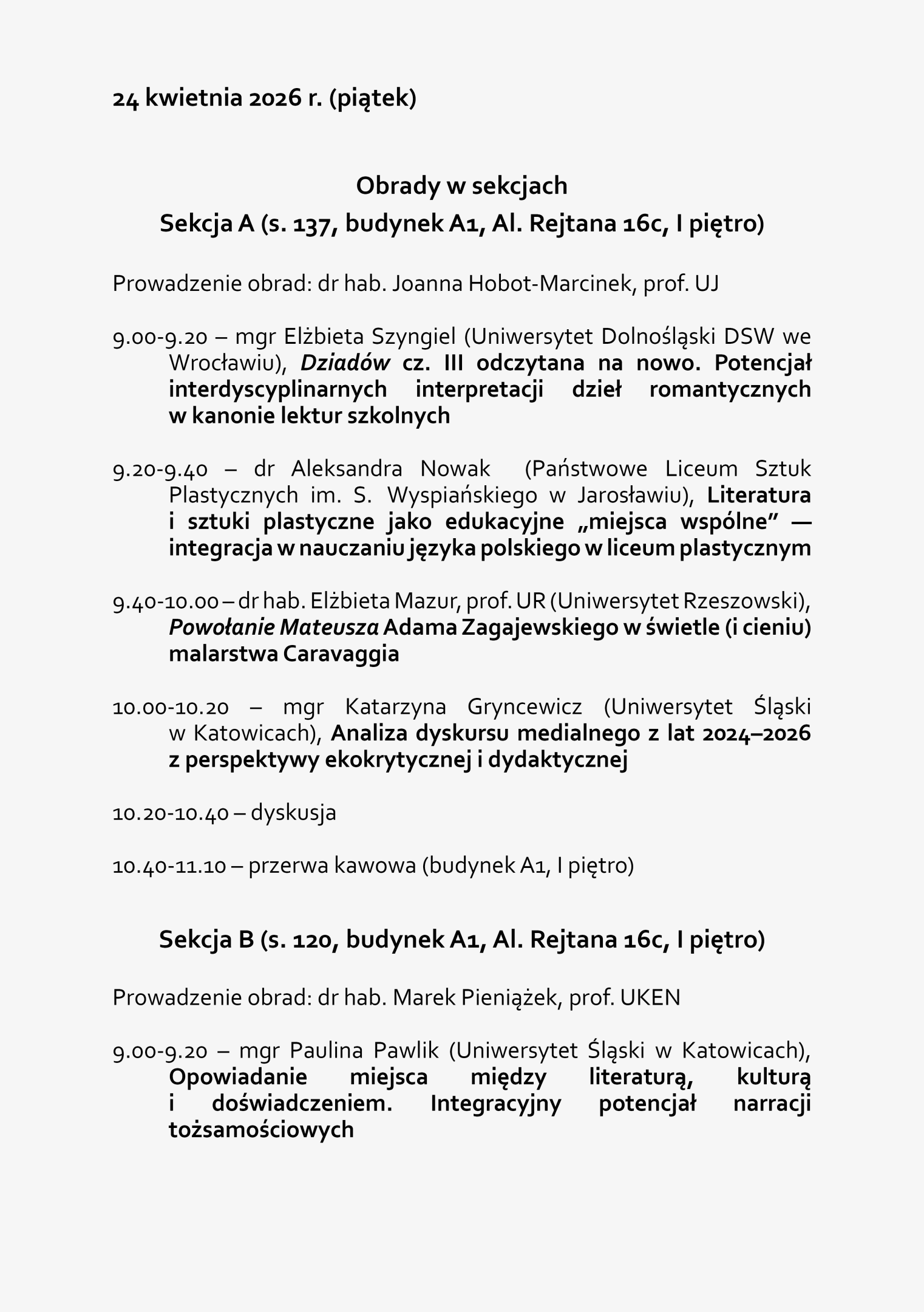 - Międzynarodowa Konferencja Naukowa „Miejsca wspólne. Integracja i jej perspektywy w dydaktyce polonistycznej” (Instytut Polonistyki i Dziennikarstwa, 23–24 kwietnia 2026 r.)