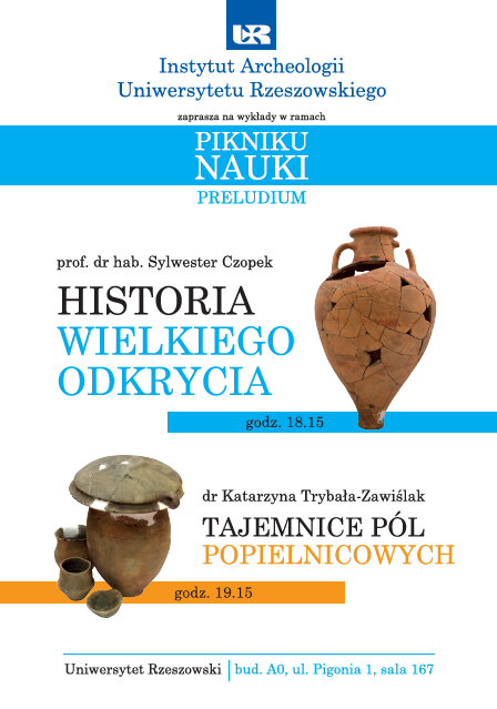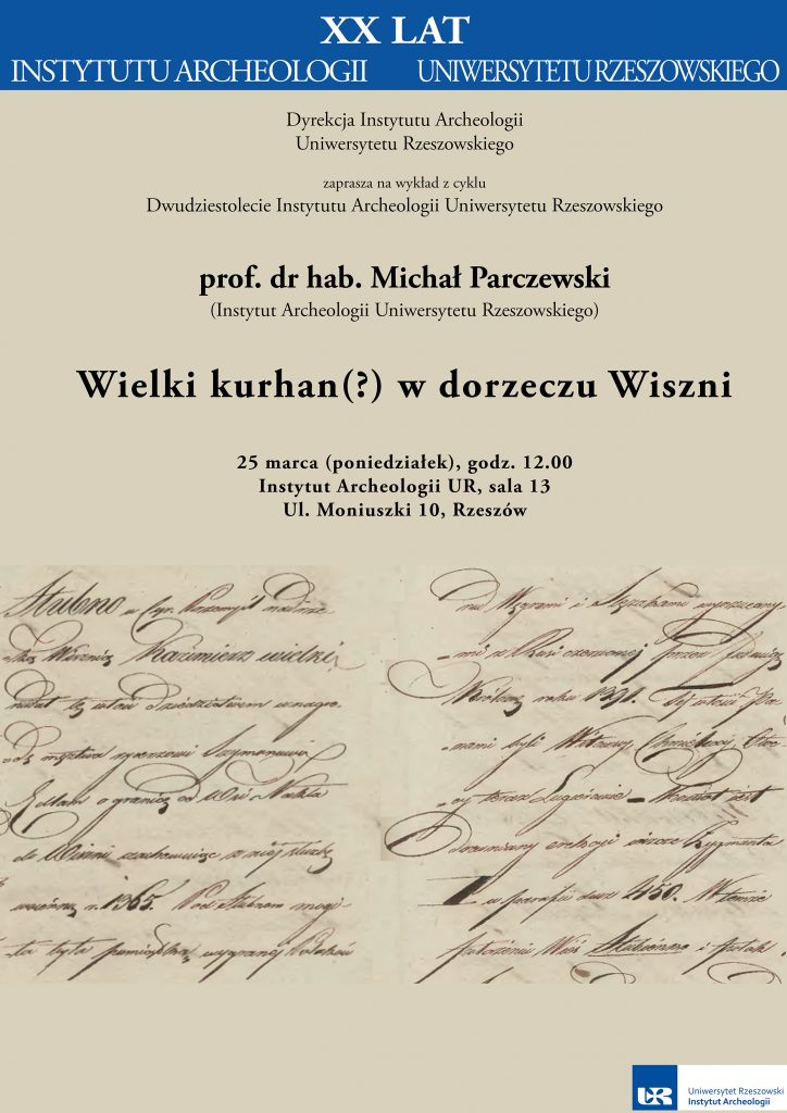 Wykład prof. dr hab. Michała Parczewskiego Wykład odbył się z okazji XX-lecia Instytutu Archeologii UR. Termin/miejsce: 25 marca 2019 r., godz. 12:00 w sali nr 13, w budynku Instytutu Archeologii UR. |