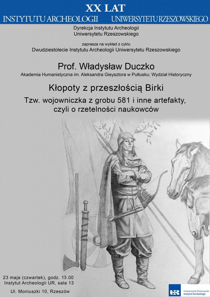 Wykład prof. dr hab. Władysława Duczki Wykład odbył się z okazji XX-lecia Instytutu Archeologii UR. Termin/miejsce: 23 maja 2019 r., godz. 13:00 w sali nr 13, w budynku Instytutu Archeologii UR. |
