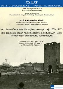 Wykład dr hab. Aleksandra Musina Wykład odbył się z okazji XX-lecia Instytutu Archeologii UR. Termin/miejsce: 11 kwietnia 2019 r., godz. 12:00 w sali nr 13, w budynku Instytutu Archeologii UR. |