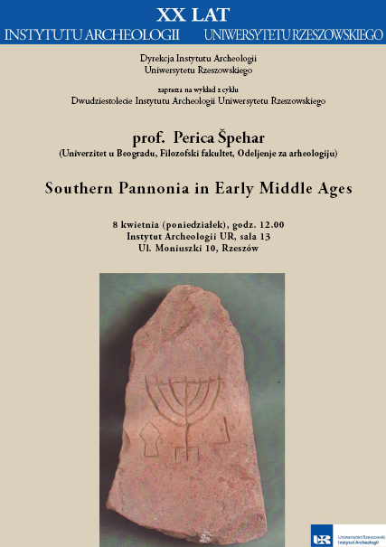 Wykład dr Pericy Špehara Wykład odbył się z okazji XX-lecia Instytutu Archeologii UR. Termin/miejsce: 8 kwietnia 2019 r., godz. 12:00 w sali nr 13, w budynku Instytutu Archeologii UR. |