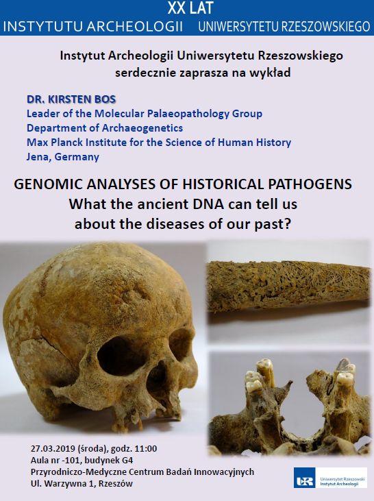 Wykład dr Kirsten Bos Wykład odbył się z okazji XX-lecia Instytutu Archeologii UR. Termin/miejsce: 27 marca 2019 r., godz. 11:00 w auli nr 101, w budynku G4, ul. Warzywna 1 (Wydział Medyczny). |