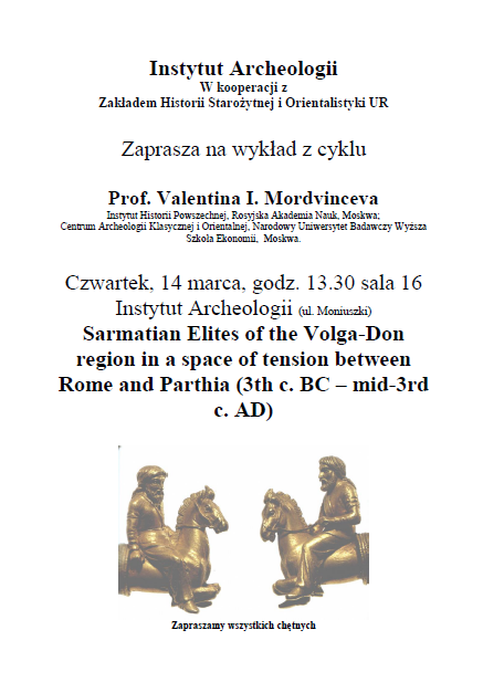 Wykład prof. Valentiny I. Mordvincevej Termin/miejsce: 14 marca 2019 r., godz. 13:30 w sali nr 13, w budynku Instytutu Archeologii UR. |
