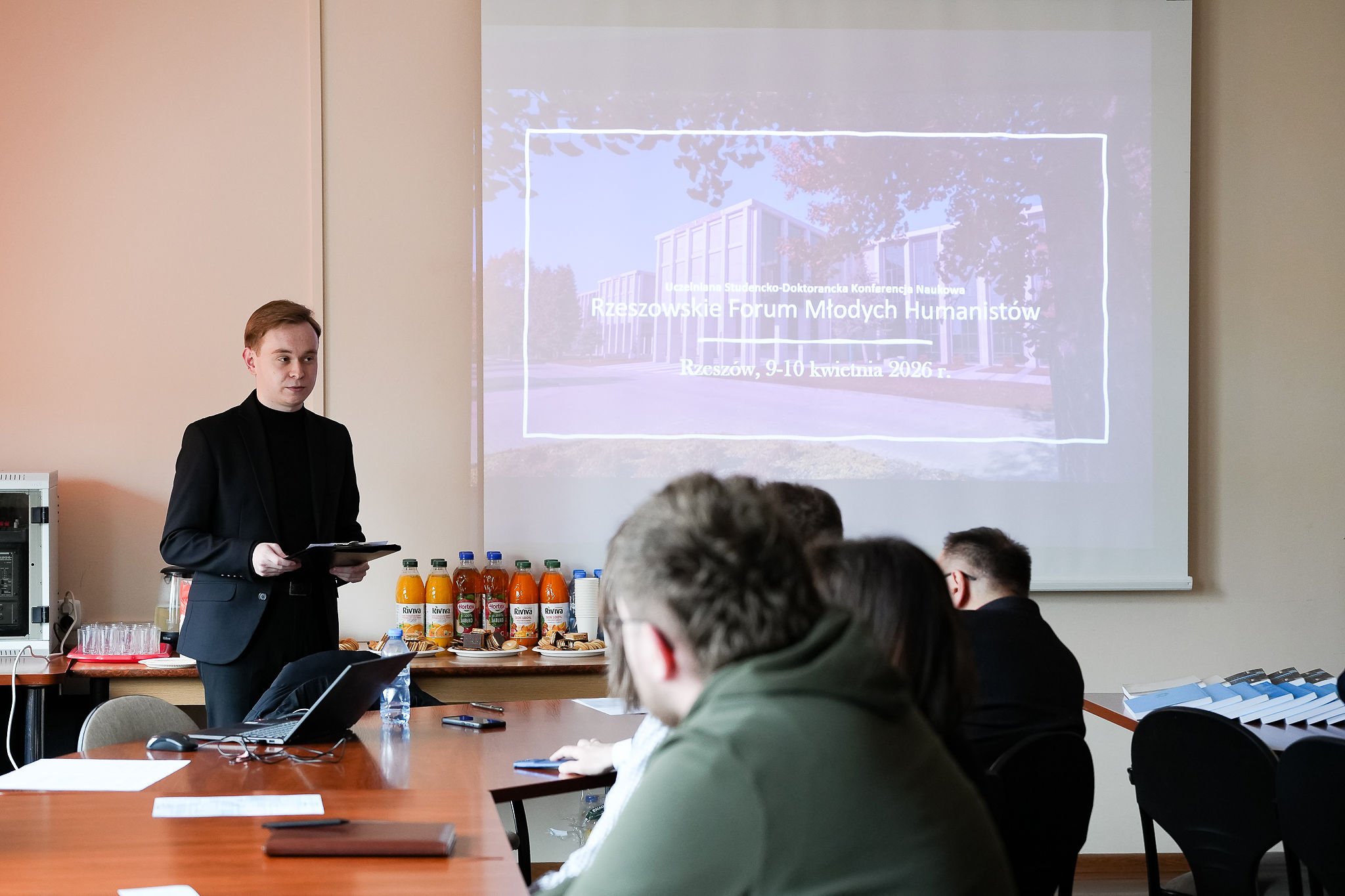 W dniach 9-10 kwietnia 2026 r. na naszym Wydziale odbyła się konferencja naukowa pt. „Rzeszowskie Forum Młodych Humanistów” zorganizowana przez Samorząd Studentów Wydziału Humanistycznego UR. W wydarzeniu wzięli udział Studenci naszego Wydziału, Wydziału Ekonomii i Finansów, Wydziału Prawa i Administracji oraz Wydziału Filologicznego.
