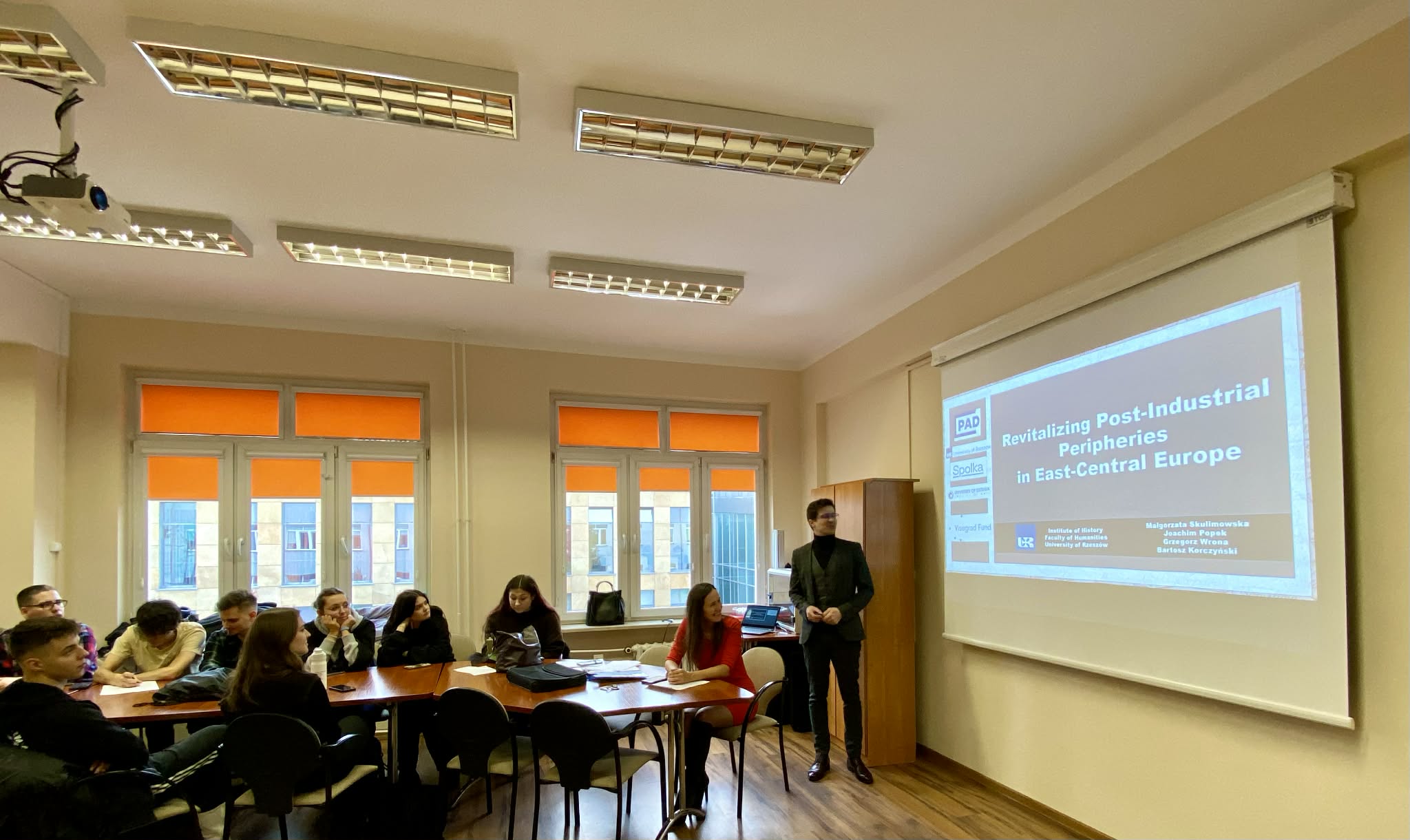W dniu 27 listopada 2025 r. odbyło się spotkanie otwarte poświęcone wynikom badań w ramach międzynarodowego projektu badawczego „Revitalizing Post-Industrial Peripheries: Regional Network for Sustainable Urban Regeneration” finansowanego przez International Visegrad Fund realizowanego w Instytucie Historii Uniwersytetu Rzeszowskiego.