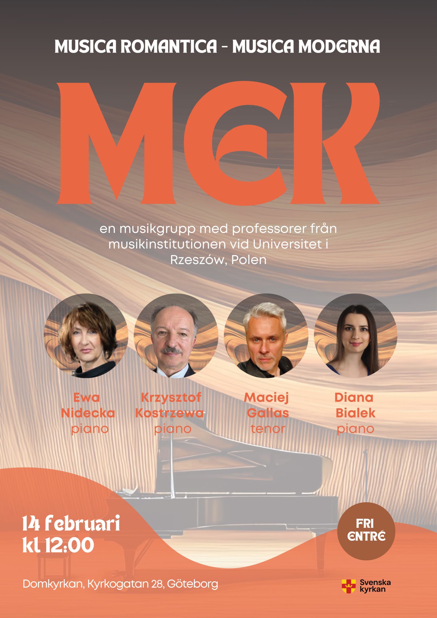W sobotę 14 lutego 2026 r. miał miejsce koncert „Musica Romantica – Musica Moderna” w wykonaniu grupy „MEK – Ensemble” w składzie: Maciej Gallas – tenor, Ewa Nidecka – kompozycja, fortepian i Krzysztof Kostrzewa – kompozycja, fortepian. Gościnnie wystąpiła również pianistka z Krakowa – Diana Białek. Program obejmował utwory fortepianowe A. Dvoraka, W. Kacperskiego, G. Faure. Maciej Gallas wykonał arię Giuseppe Verdiego La donna e mobile z opery Rigoletto oraz pieśni współczesnych kompozytorów – Ewy Nideckiej i Krzysztofa Kostrzewy. Współorganizatorem koncertu był prof. Wojciech Głuch- kompozytor, pianista i wykładowca akademicki mieszkający w Szwecji od ponad dwudziestu pięciu lat.