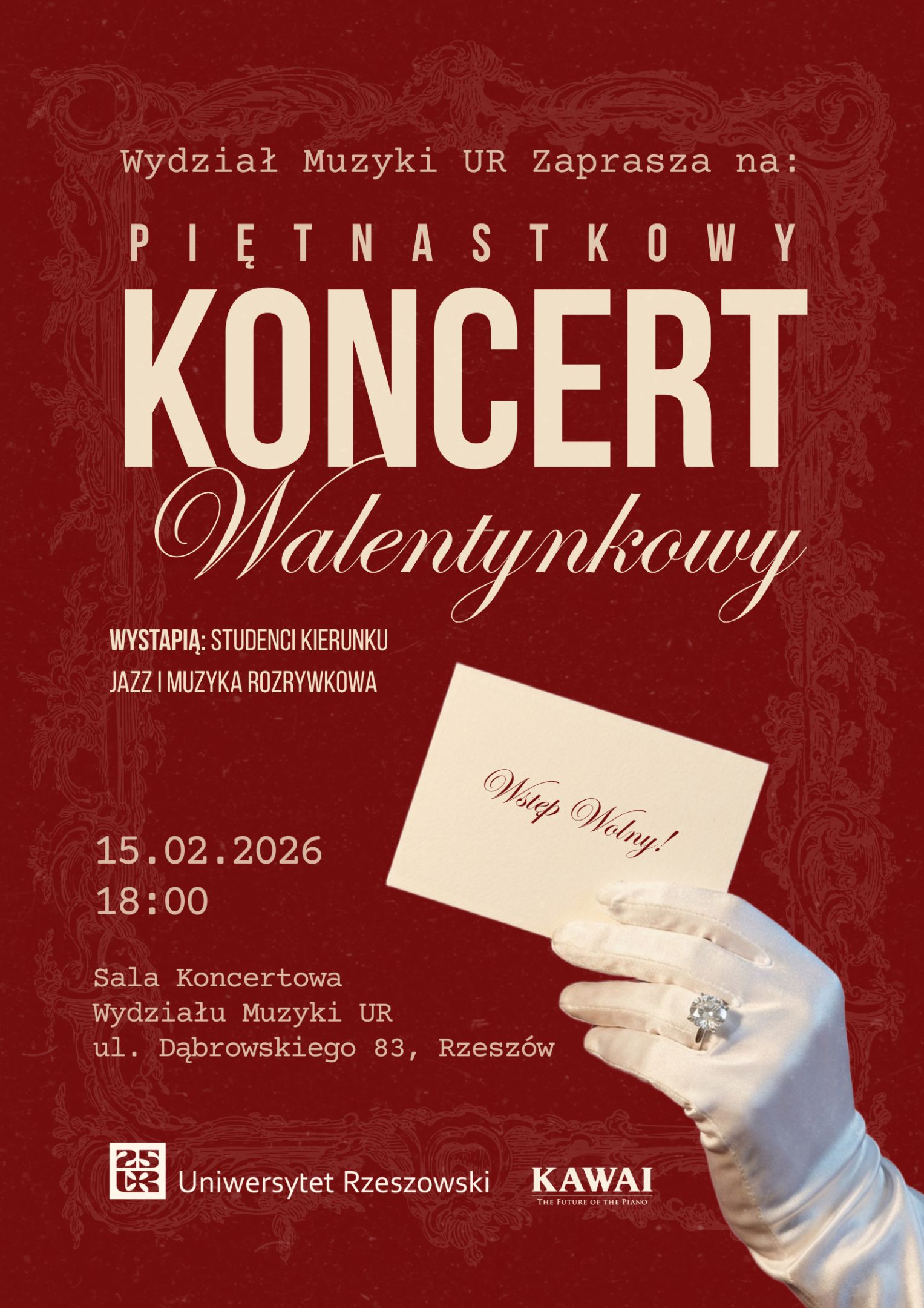 Walentynkowy koncert „piętnastkowy” to propozycja dla wszystkich, którzy chcą spędzić wieczór w otoczeniu muzyki na żywo i twórczej atmosfery Wydziału Muzyki.