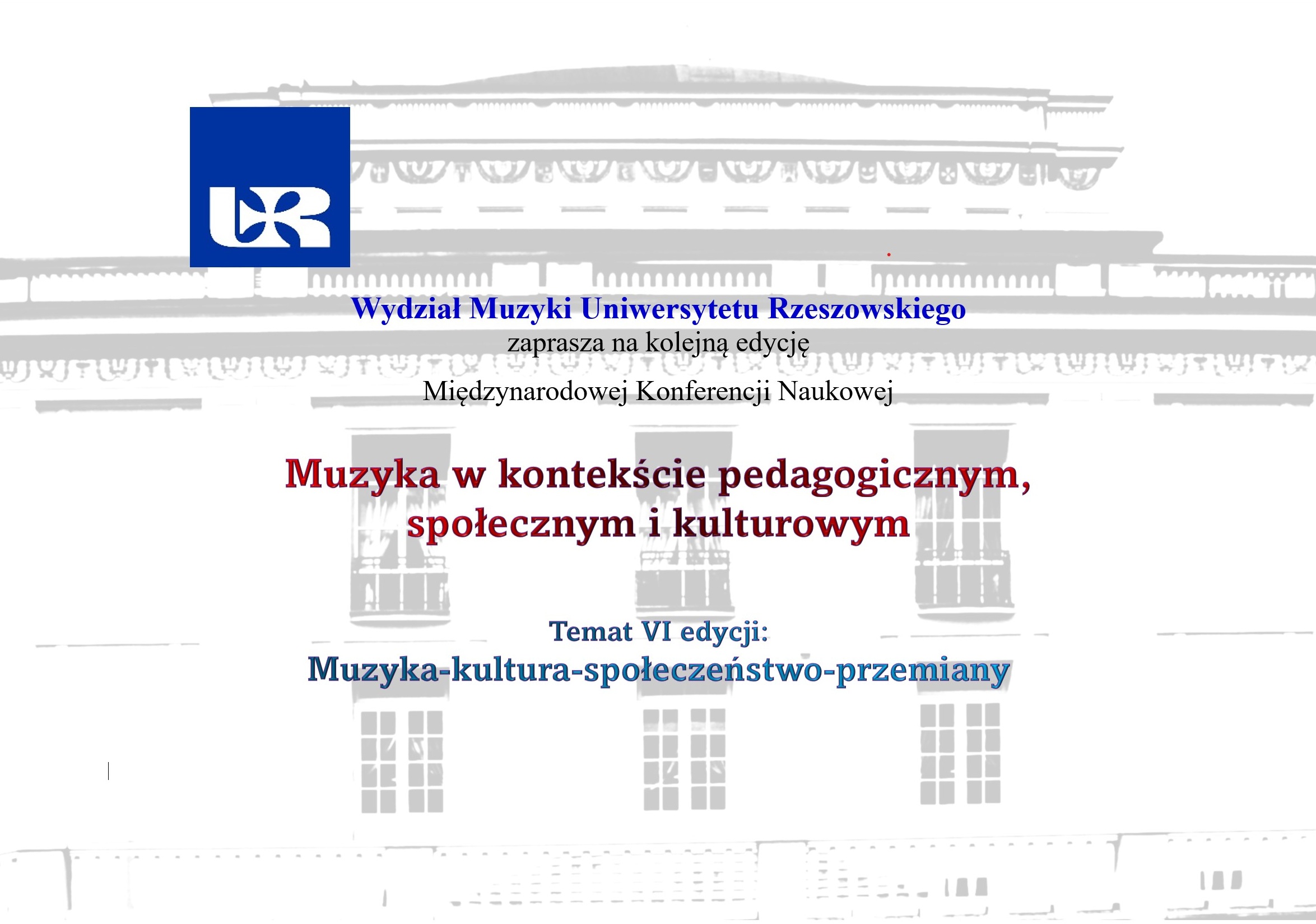 z różnych perspektyw badawczych. Konferencja zawiera szeroką formułę tematyczną, obejmującą wieloaspektowe zagadnienia związane z muzyką. Tym razem proponujemy tytuł: „Muzyka-kultura-społeczeństwo-przemiany”, ukazujący interdyscyplinarne podejście do analizy roli muzyki w kształtowaniu rzeczywistości społecznej i kulturowej.