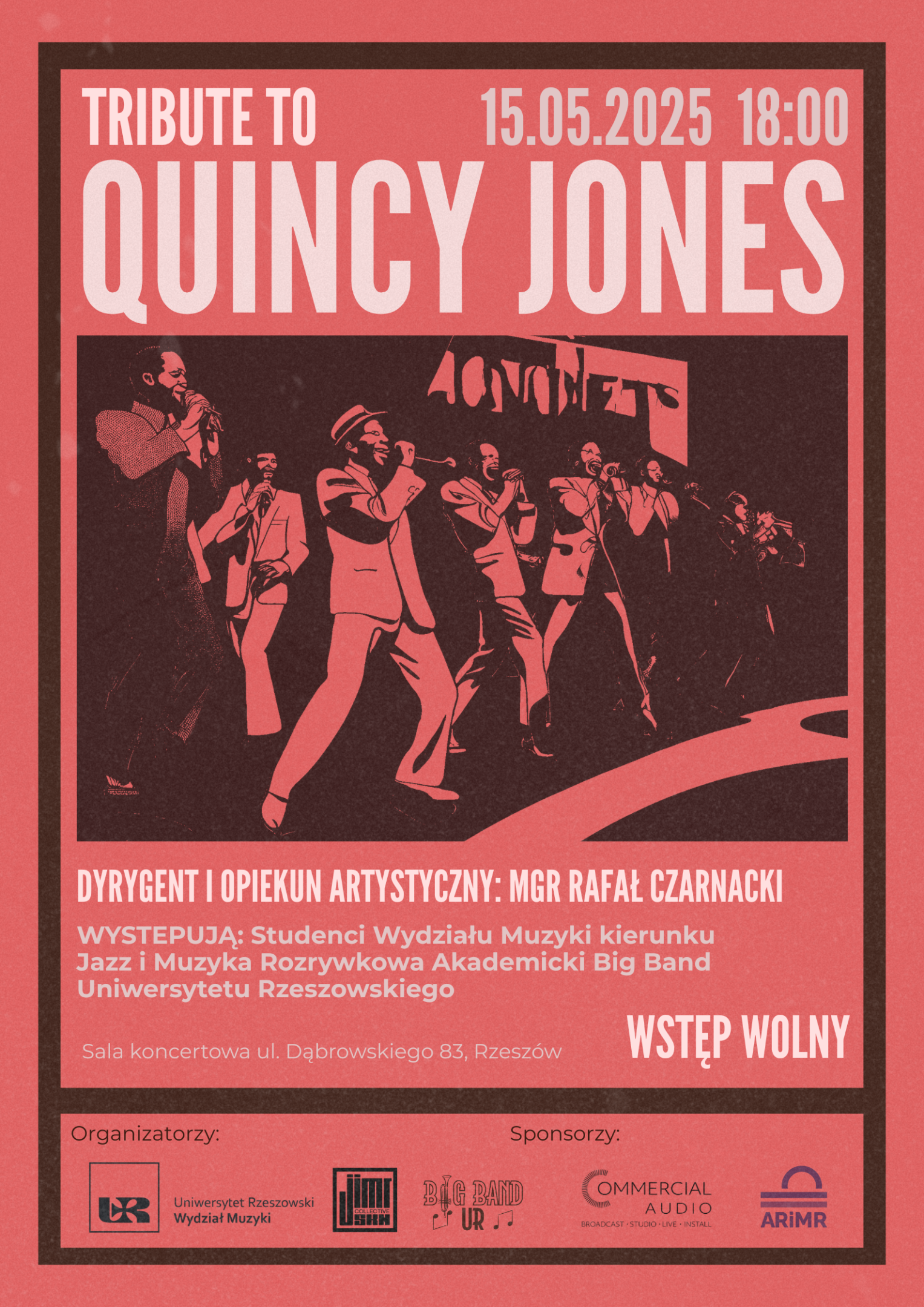Koncert będzie wspaniałą okazją do upamiętnienia twórczości Quincy Jones’a, która jest fundamentem dla dzisiejszej muzyki rozrywkowej. Będzie to także przestrzeń do integracji całej społeczności akademickiej świętującej powstanie Big Bandu Akademickiego UR.