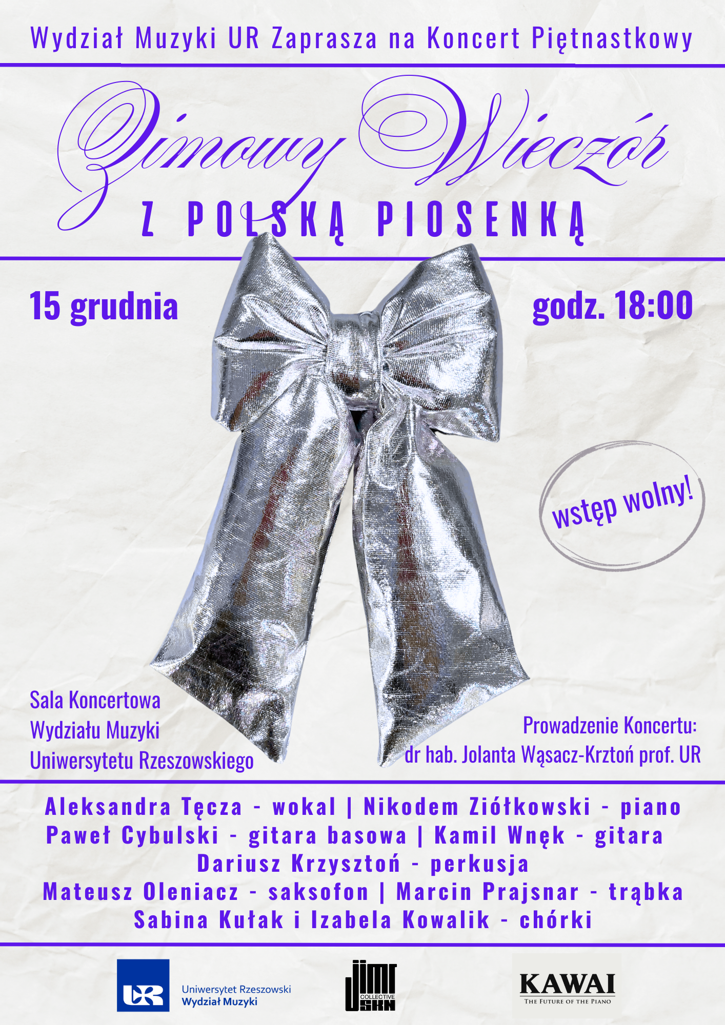 Wydział Muzyki Uniwersytetu Rzeszowskiego serdecznie zaprasza na kolejne wyjątkowe wydarzenie w ramach cyklu koncertów „piętnastkowych”, które tym razem dedykowane jest ponadczasowym perłom polskiej muzyki rozrywkowej.