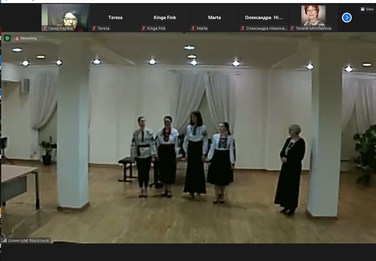 Niezwykłym dopełnieniem pierwszego dnia konferencji był Koncert Muzyki Wokalnej w wykonaniu Mariany Poltorak, Magdaleny Węgielnik oraz Ksenii Łuki, studentek klasy śpiewu prof. dr hab. Olgi Popowicz w Akademii Muzycznej im. Krzysztofa Pendereckiego w Krakowie, którym na fortepianie towarzyszyła Dominika Peszko. W programie koncertu znalazły się pieśni solowe kompozytorów polskich i ukraińskich, które tego wieczoru, dzięki transmisji on-line, dotarły i wybrzmiały ze szczególnym przesłaniem w wyjątkowych miejscach, niestety także tych służących jako schronienie przed atakiem rakietowym.