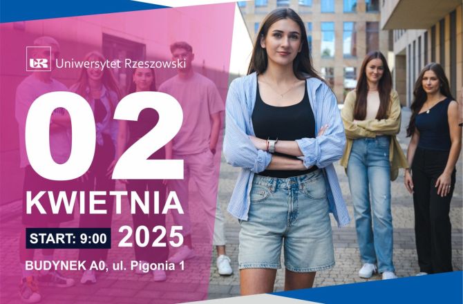 Uniwersytet Rzeszowski zaprasza na Dzień Otwarty połączony z XVI Uniwersyteckimi Targami Pracy, który odbędzie się w środę, 2 kwietnia 2025 roku, od godziny 9:00 do godziny 14:00 w budynku A0 przy ul. Pigonia 1 w Rzeszowie.