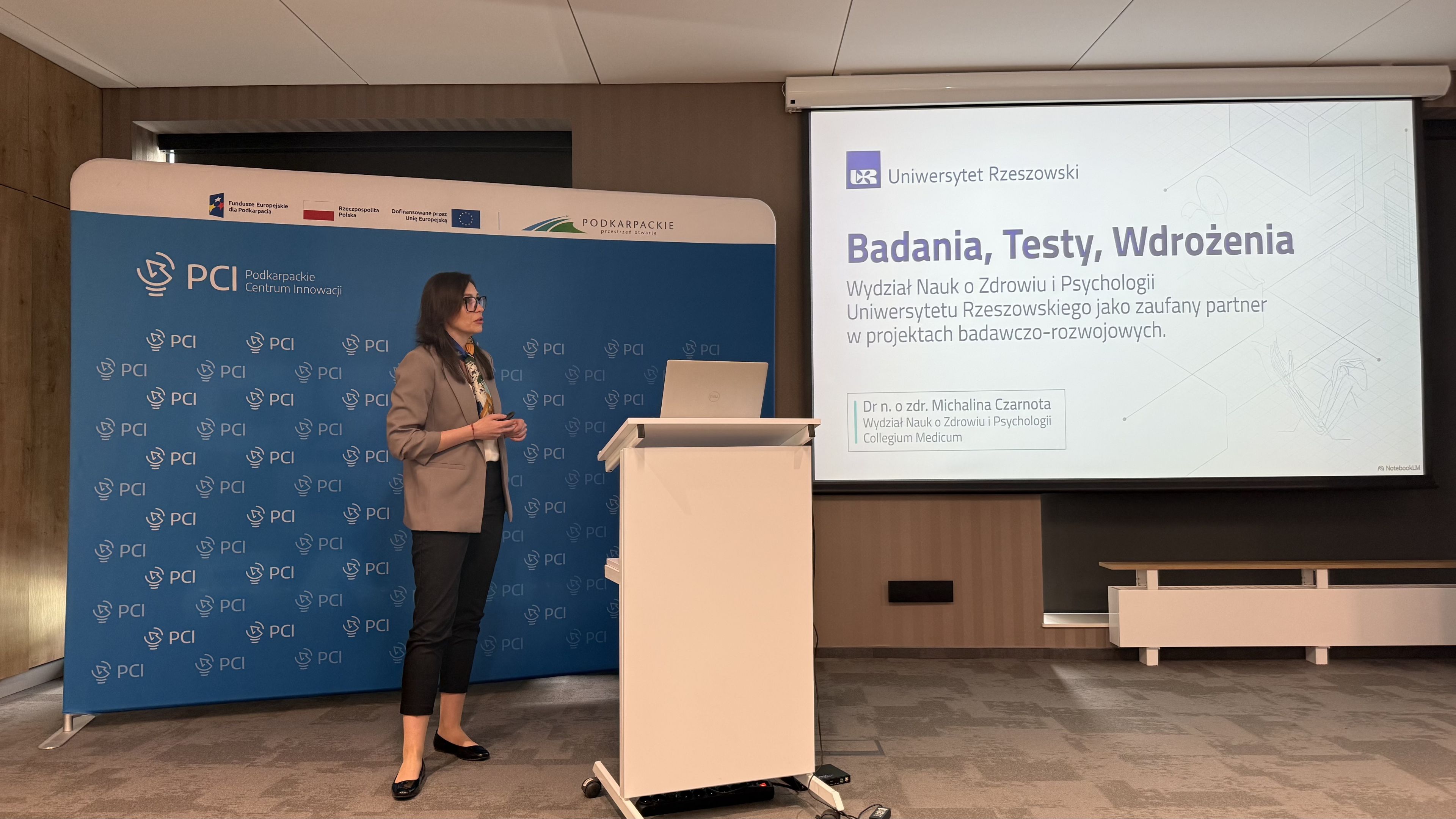 W dniu 14 kwietnia 2026 r. w wydarzeniu networkingowym „Business Speed Dating z naukowcami” w obszarze MedTech/BioTech, organizowanym przez Podkarpackie Centrum Innowacji, udział wzięli przedstawiciele Wydziału Nauk o Zdrowiu i Psychologii Uniwersytetu Rzeszowskiego, w tym także kierownicy laboratoriów działających w ramach Uniwersyteckiego Centrum Badawczo-Rozwojowego w Naukach o Zdrowiu.
