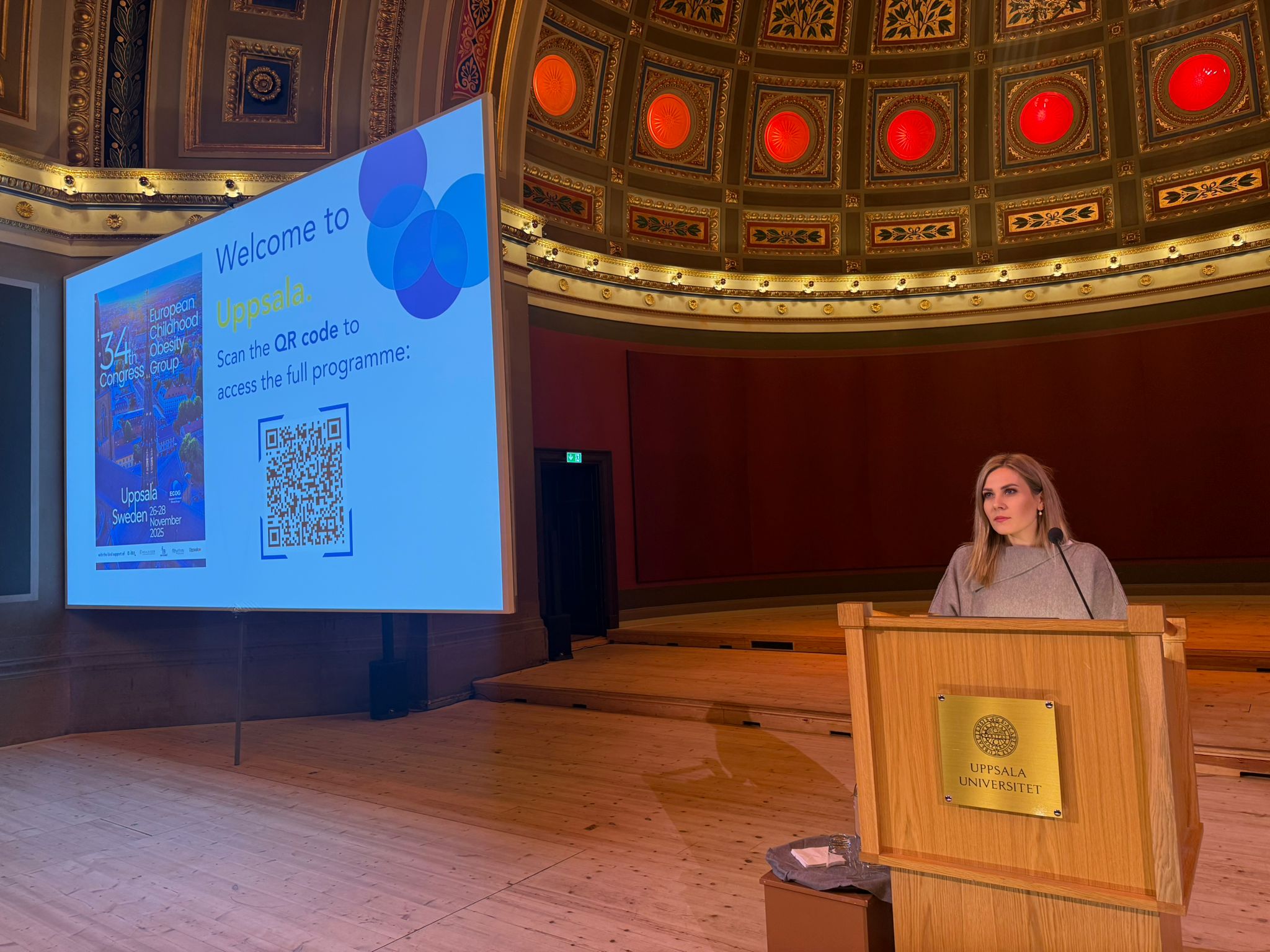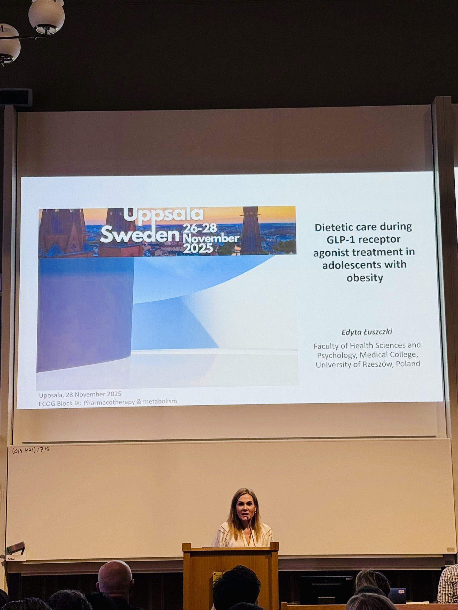 Z dumą informujemy, że Dziekan Wydziału Nauk o Zdrowiu i Psychologii Collegium Medicum, Pani dr hab. Edyta Łuszczki, prof. UR, wzięła udział w 34 Kongresie European Childhood Obesity Group (ECOG), który odbył się w dniach 26–28 listopada 2025 r. w Uppsali (Szwecja).