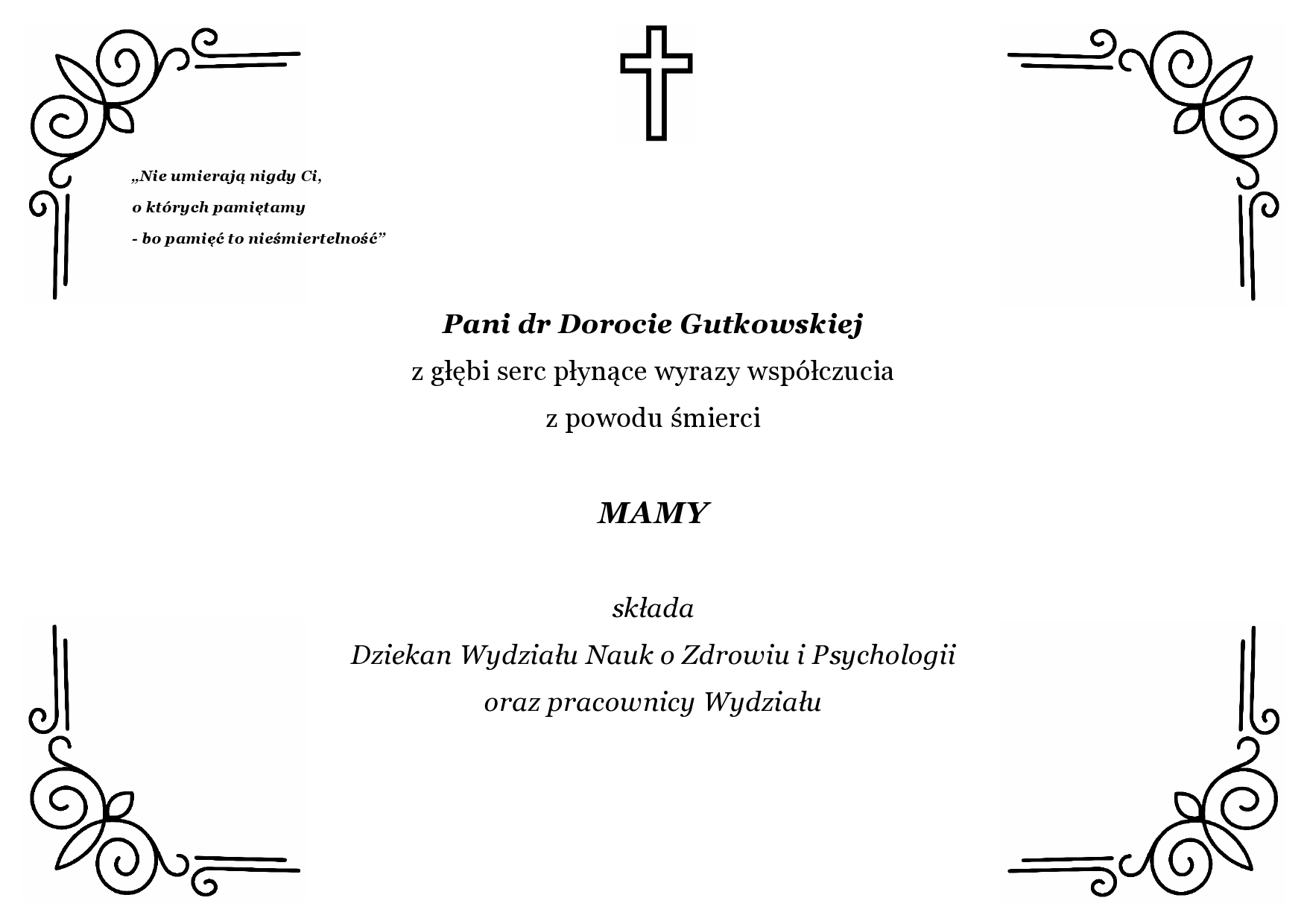 Kondolencje dla dr Doroty Gutkowskiej
