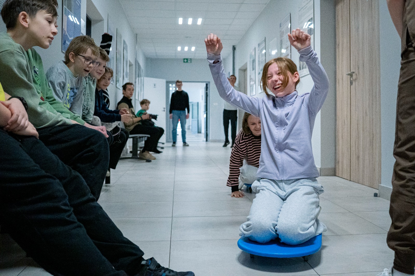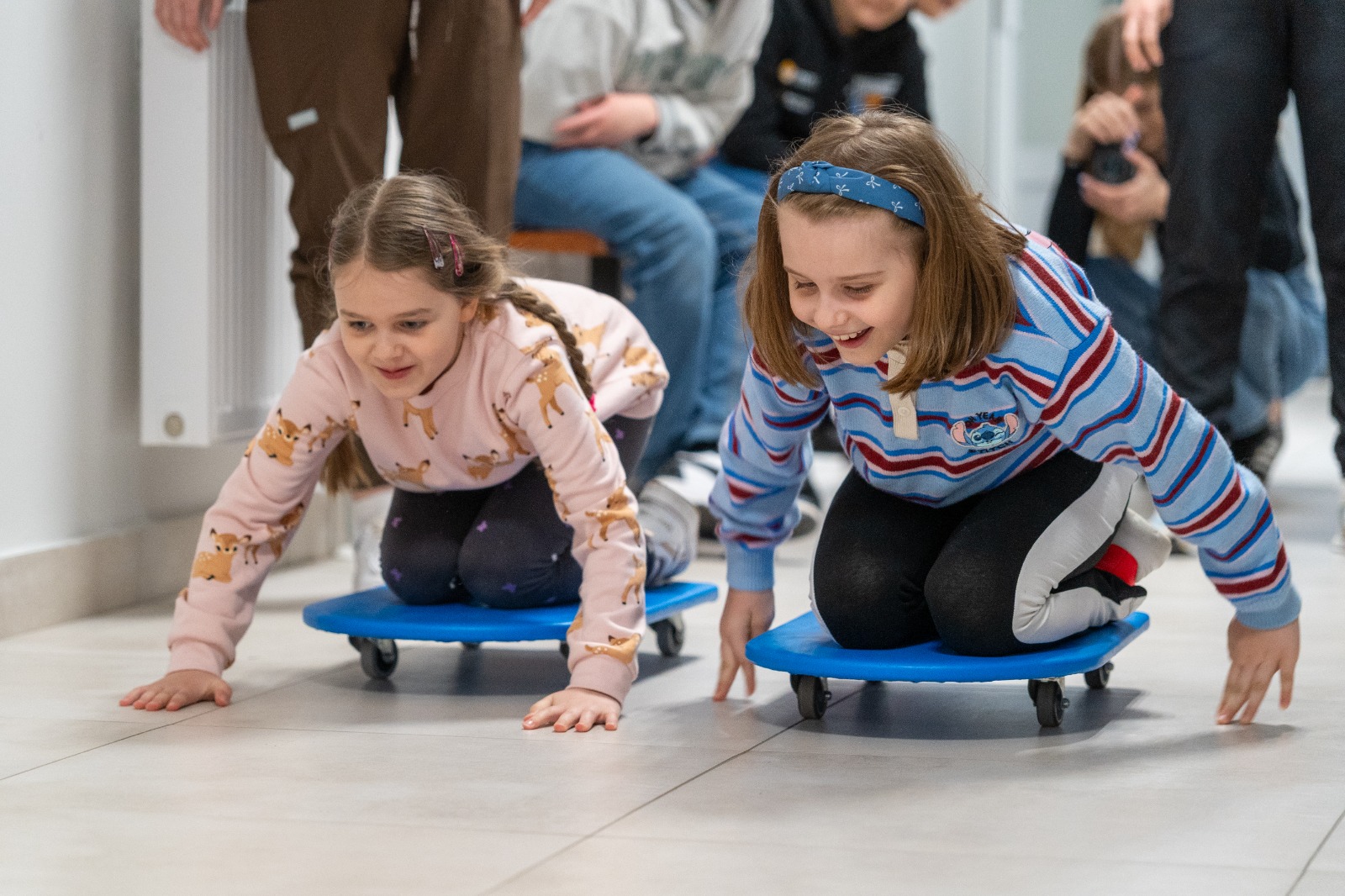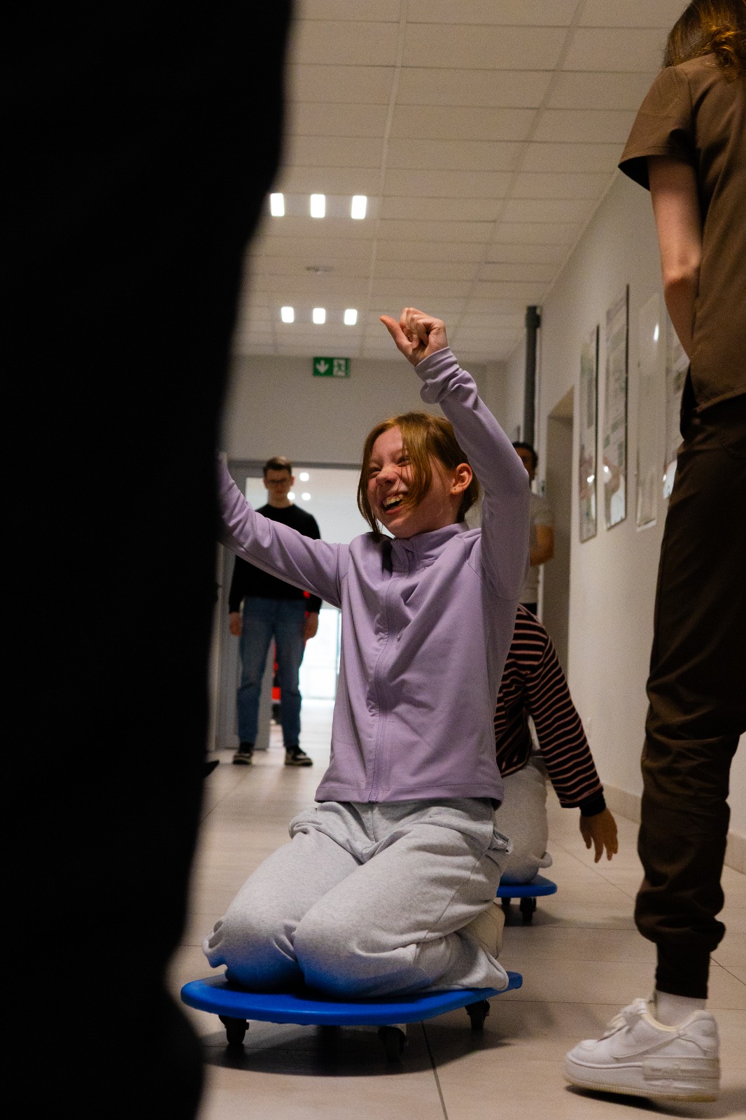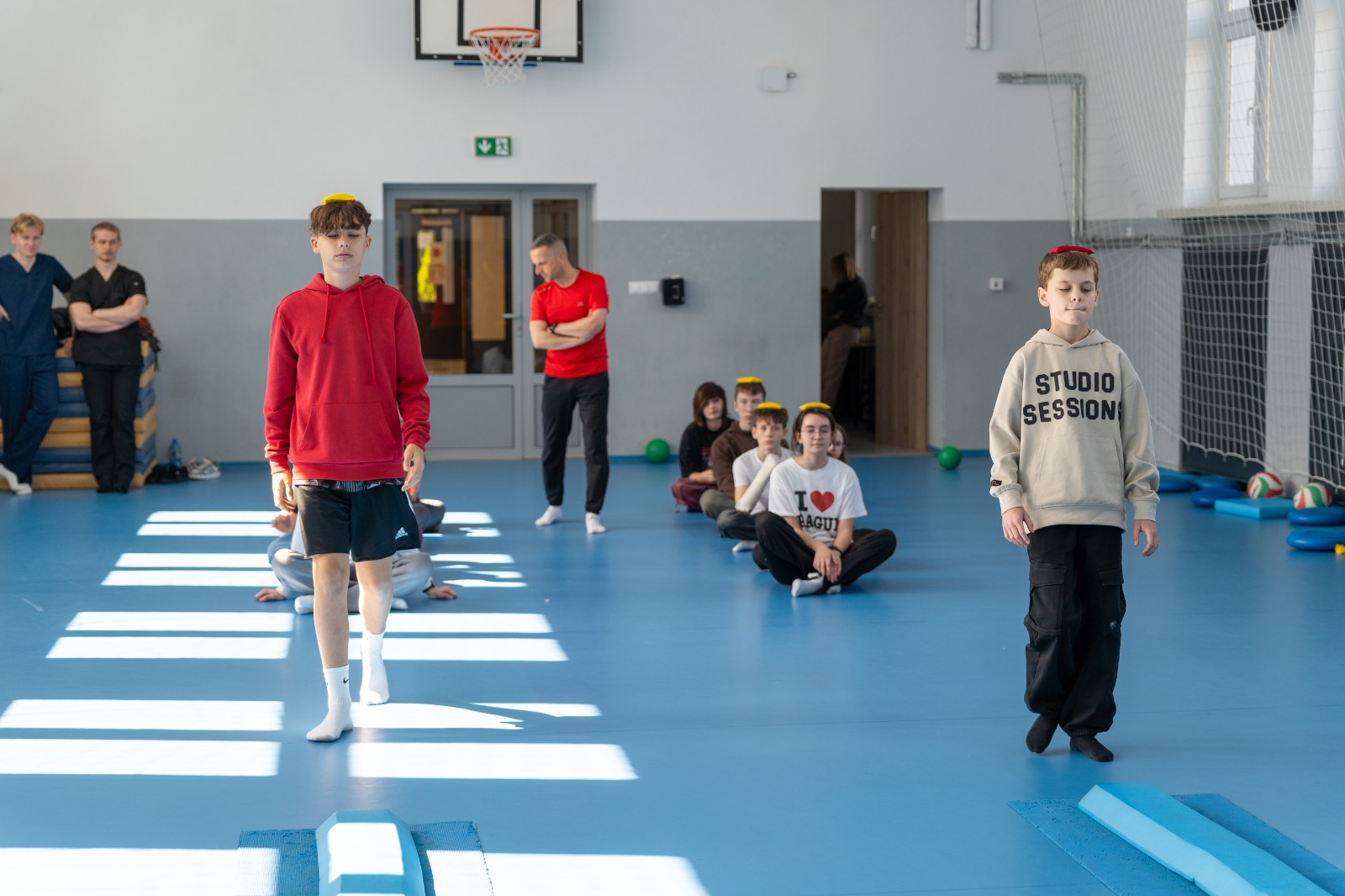 W dniu 21.03.2026, kolejny raz, mieliśmy przyjemność gościć w Instytucie Fizjoterapii uczniów z klas 4-8 w ramach zajęć Małego Uniwersytetu Rzeszowskiego. Na zajęciach praktycznych młodzi studenci, z wielką pasją i zaangażowaniem, ćwiczyli swoją równowagę i koordynację oraz doskonalili swoje narządy zmysłu i zdolności sensomotoryczne na zajęciach z integracji sensorycznej.