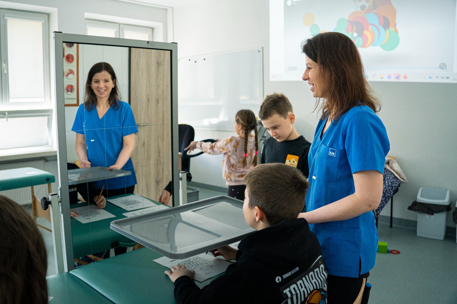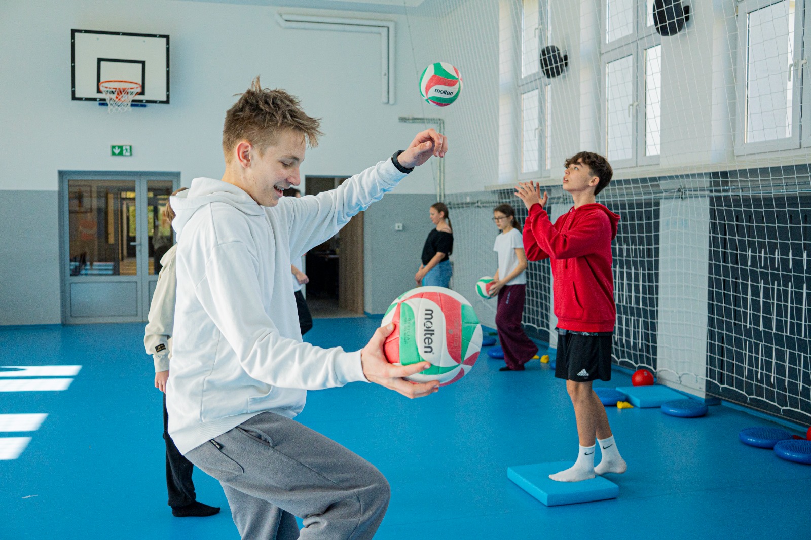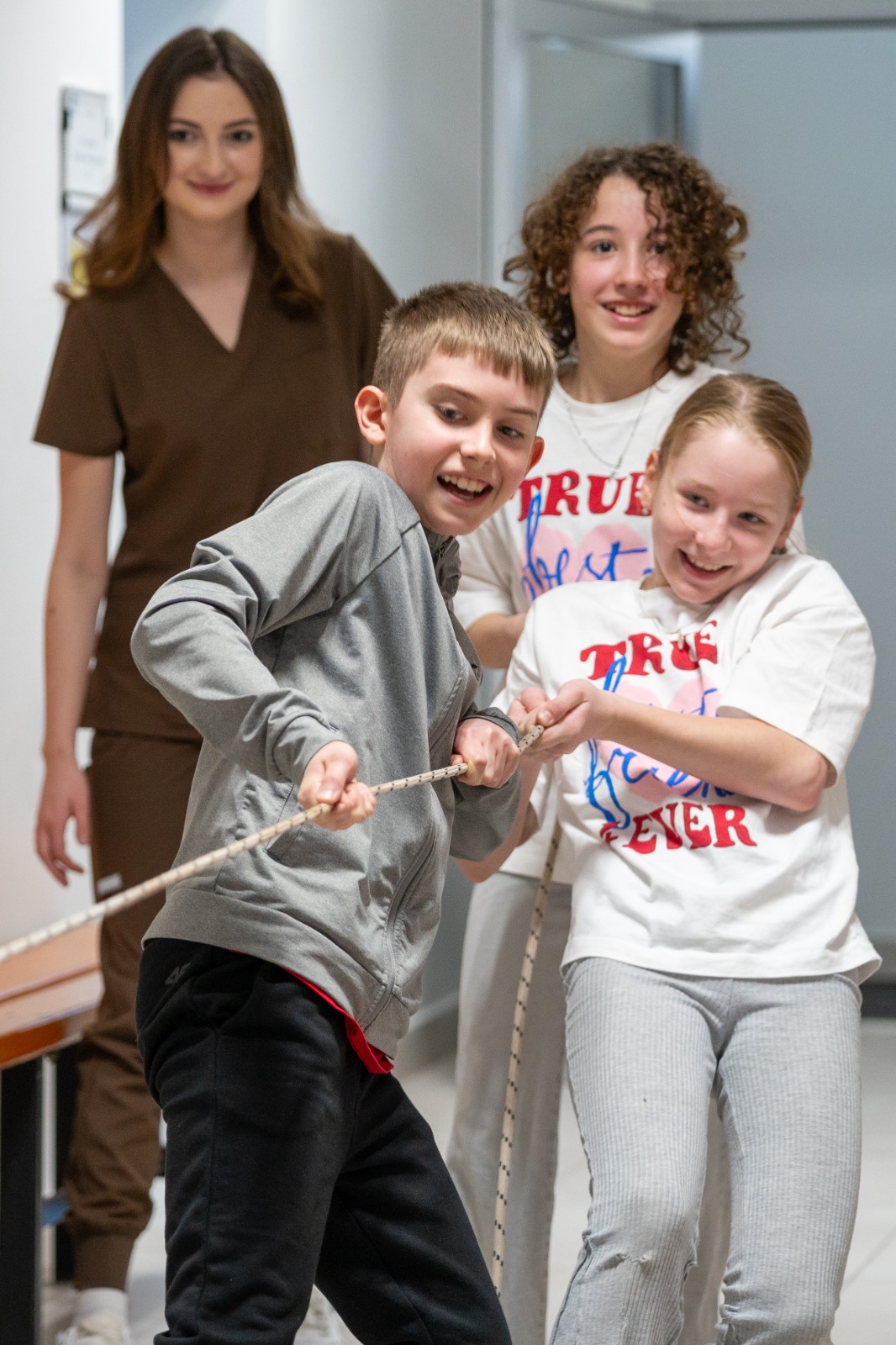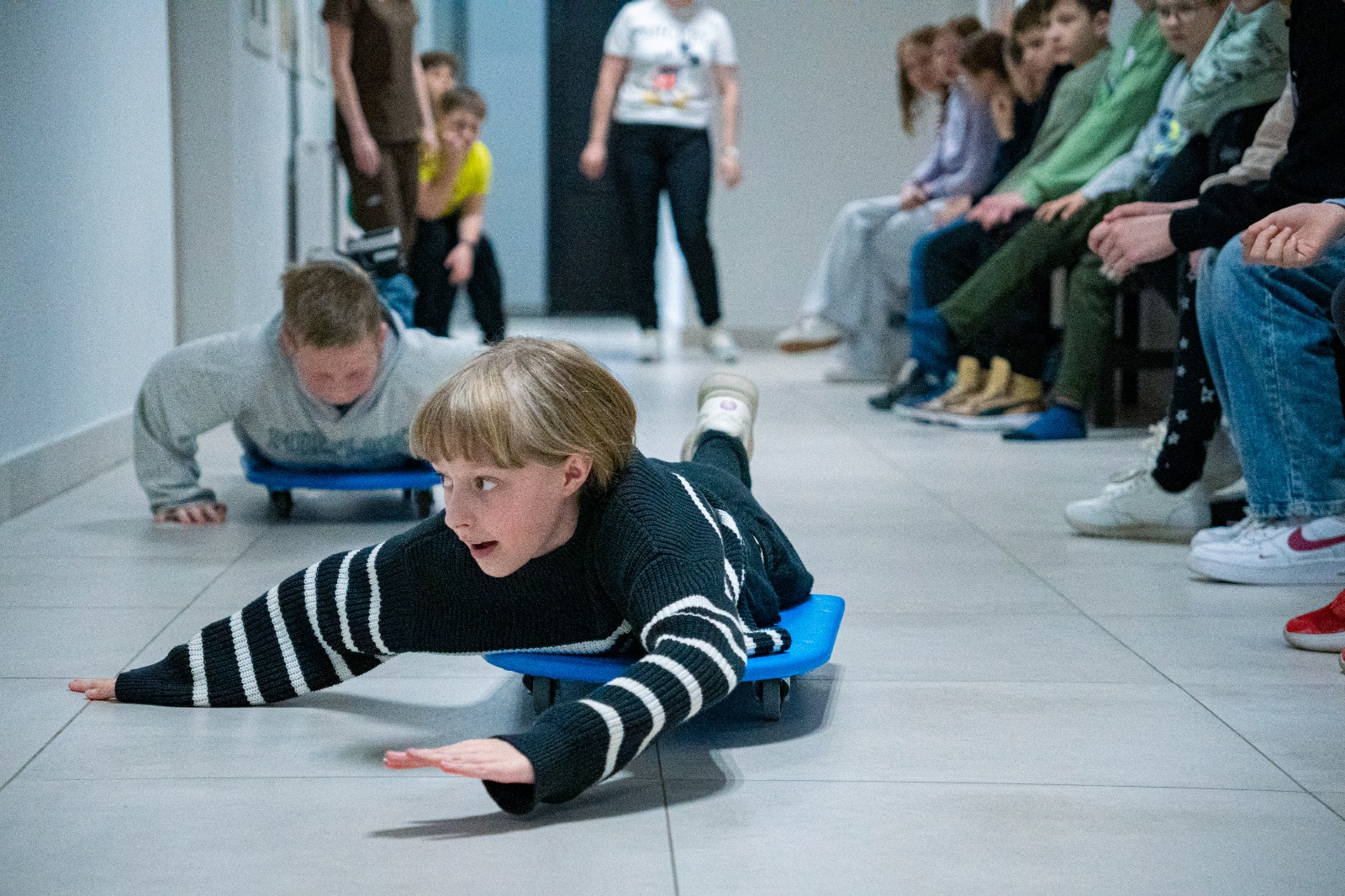 W dniu 21.03.2026, kolejny raz, mieliśmy przyjemność gościć w Instytucie Fizjoterapii uczniów z klas 4-8 w ramach zajęć Małego Uniwersytetu Rzeszowskiego. Na zajęciach praktycznych młodzi studenci, z wielką pasją i zaangażowaniem, ćwiczyli swoją równowagę i koordynację oraz doskonalili swoje narządy zmysłu i zdolności sensomotoryczne na zajęciach z integracji sensorycznej.