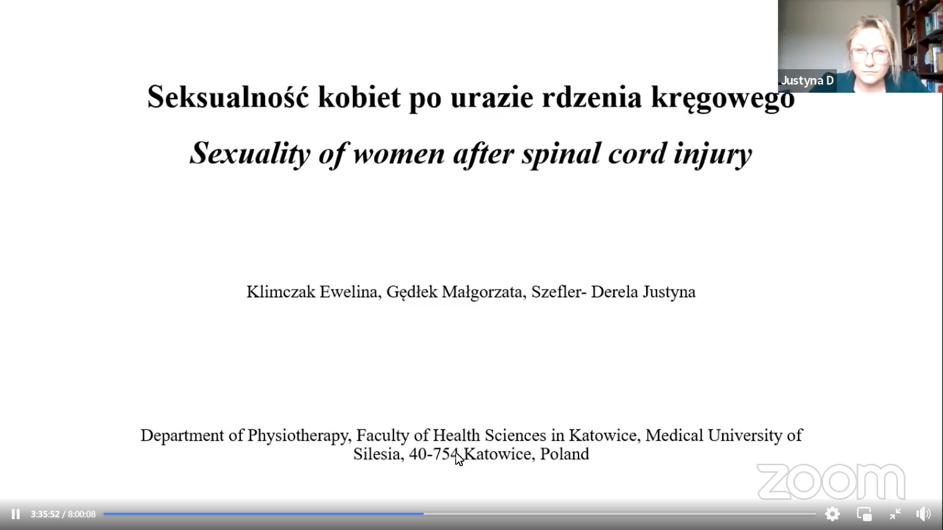 Sesja plakatowa III: Podlasek Aleksandra, Szydłak Dorota, Wasiuk-Zowada Dagmara „Problem kinezjofobii wśród osób z hemofilią. (The problem of kinesiophobia among people with hemophilia.)” (Katowice, Polska)