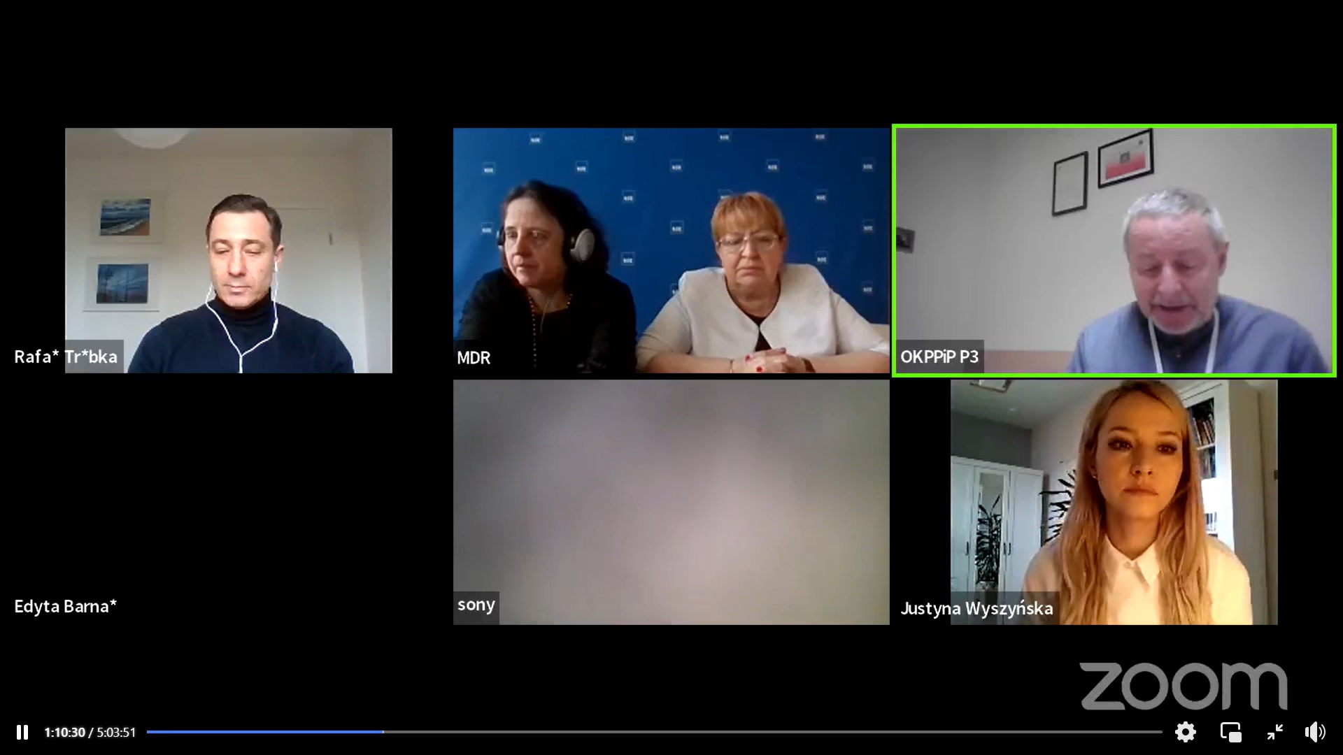 prof. dr hab. Sylwestra Czopka, Prezesa Polskiego Towarzystwa Fizjoterapii dr Rafała Trąbki, Prezesa Polskiego Towarzystwa Rehabilitacji dr Rafała Sapuły oraz Prezesa Krajowej Rady Fizjoterapeutów dr Tomasza Dybka w formie online.