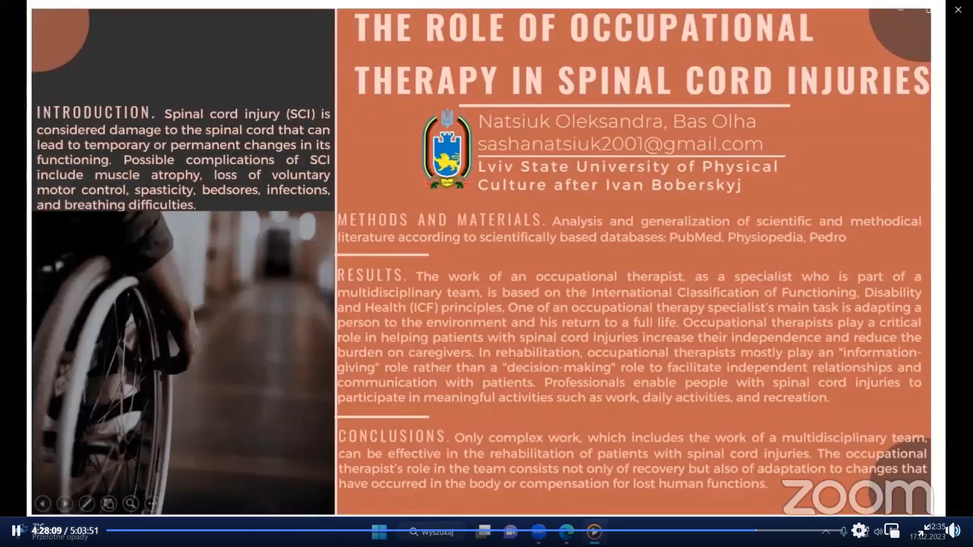 Sesja studencka III: Peleno Andrij, Fedechko Maryana „Skuteczność programu rehabilitacji postcovidowej dla pacjentów w różnym wieku. (The effectiveness of the post-covid rehabilitation program for patients of various ages.)” (Lwów, Ukraina)