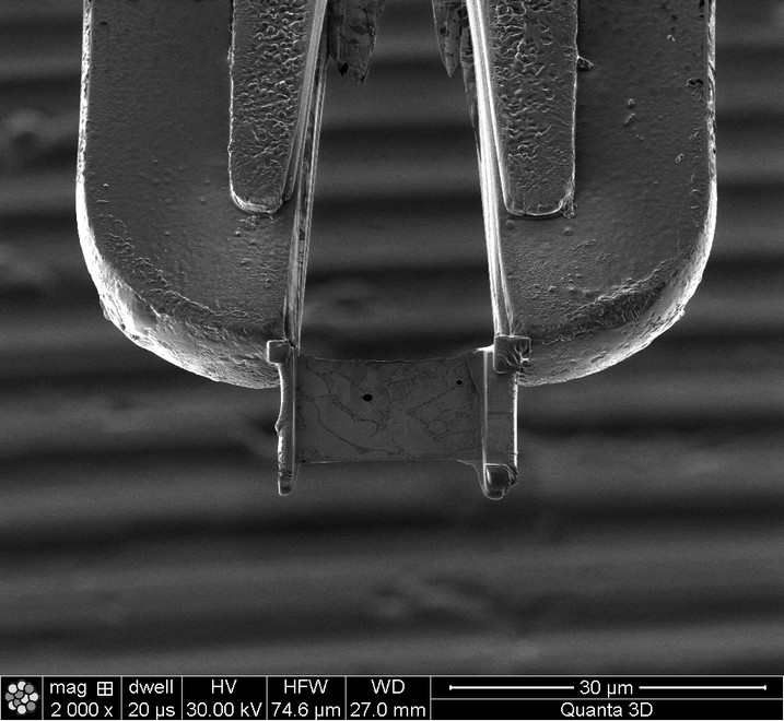 Mikroskop FEI Tecnai Osiris jest w pełni cyfrowym wysokorozdzielczym 200 kV analitycznym systemem transmisyjnego mikroskopu elektronowego (TEM), wyposażonego w układ skanujący (STEM) z detektorami HAADF i BF/DF oraz spektrometr energodyspersyjny EDX. Analityczny system mikroskopu elektronowego został tak zaprojektowanym by dostarczać unikatowej jakości i wydajności w obrazowaniu struktury badanych materiałów. Kombinacja wysokiej jasności emitera (powyżej 1.8x109 A/cm2srad) i bezokienkowego detektora EDX wykorzystującego technologię Silicon Drift Detektor (powierzchnia elementu aktywnego 120mm2, kąt bryłowy akwizycji sygnału Ω≥0,9 srad) prowadzi do nieosiągalnej w przypadku innych technologii szybkości zliczania i lepszej czułości detekcji pierwiastków lekkich. O jakości otrzymywanych obrazów decyduje również wysoka zdolność rozdzielcza mikroskopu poniżej 0,25 nm (w trybie STEM poniżej 0,18 nm) oraz limit informacyjny poniżej 0,14 nm. Niewątpliwie dobrym rozwiązaniem jest zastosowanie, do przygotowania preparatów dla mikroskopii transmisyjnej, mikroskopu SEM/FIB: FEI Quanta 200i wykorzystywanego do wstępnego obrazowania oraz trawienia jonowego próbek, zastępującego klasyczne metody przygotowania próbek, dużo bardziej nowoczesnymi, umożliwiającymi dużo większą precyzję wykonania preparatów. Aparatura SEM/FIB to mikroskop elektronowo - jonowy, tzw. dual beam operujący dwoma wiązkami: elektronów i jonów. Wiązka elektronów wykorzystywana jest do obrazowania struktury a wiązka jonów do wycinania preparatów oraz obrazowania. Mikroskop SEM/FIB cechuje się zdolnością rozdzielczą dla detektora SE w wysokiej oraz niskiej próżni nie gorszą niż 3 nm przy 30kV, a dla kolumny jonowej nie gorszą niż 7 nm przy napięciu 30 kV.