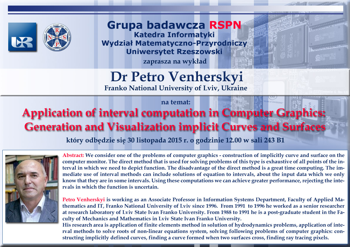01.12.2014, dr inż. Łukasz Maciura, Katedra Informatyki UR, „Problematyka tworzenia modeli trójwymiarowych narządów na podstawie segmentacji obrazów medycznych 3D”