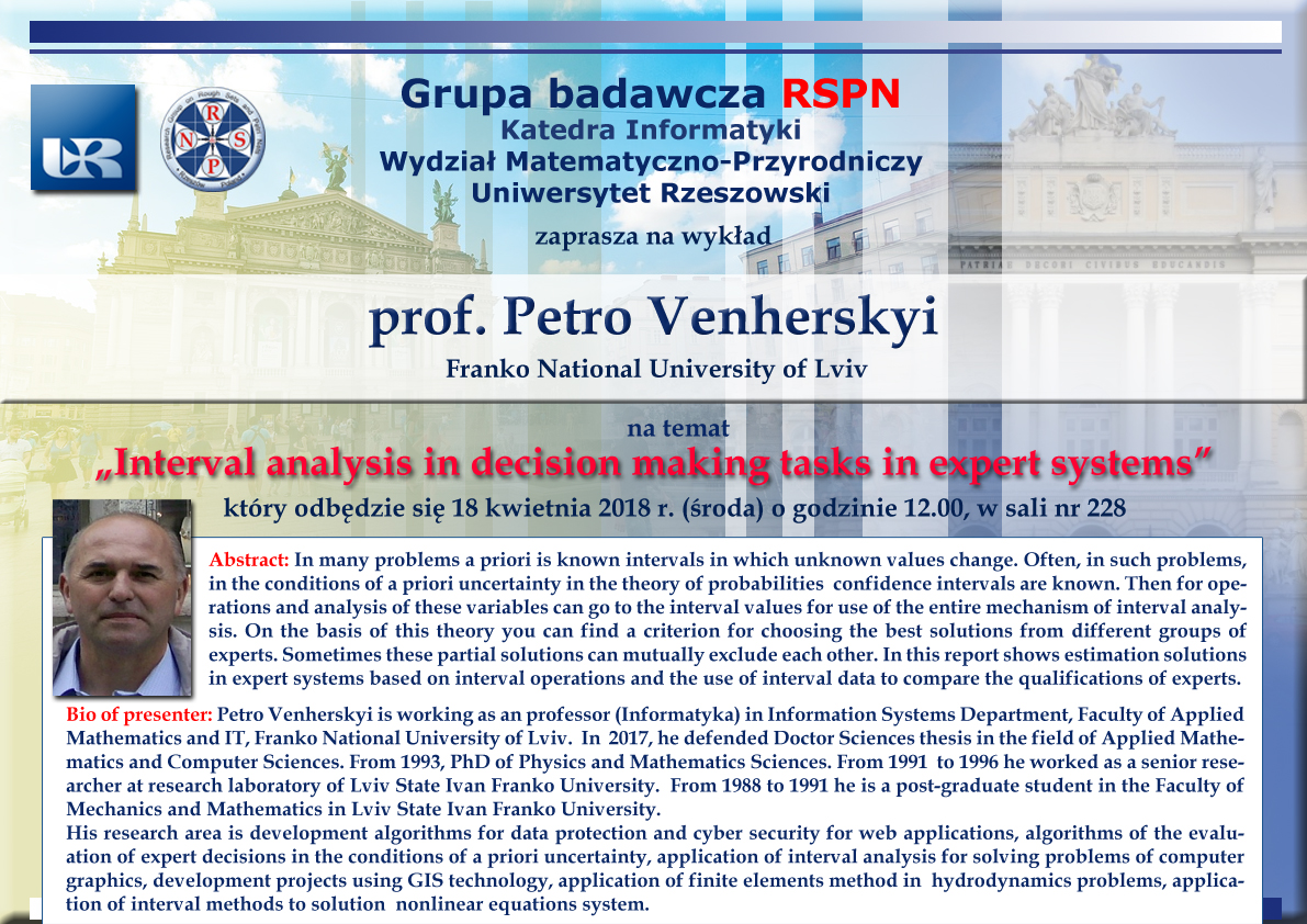 April 18, 2018, prof. Petro Venherskyi, Franko National University of Lviv, "Interval analysis in decision making tasks in expert systems"