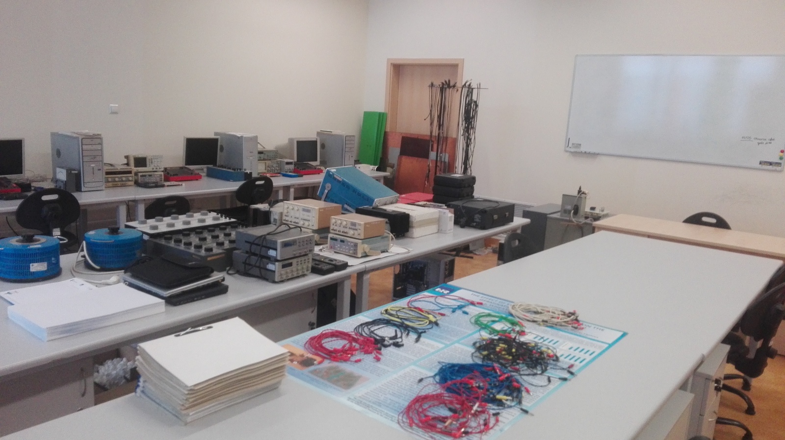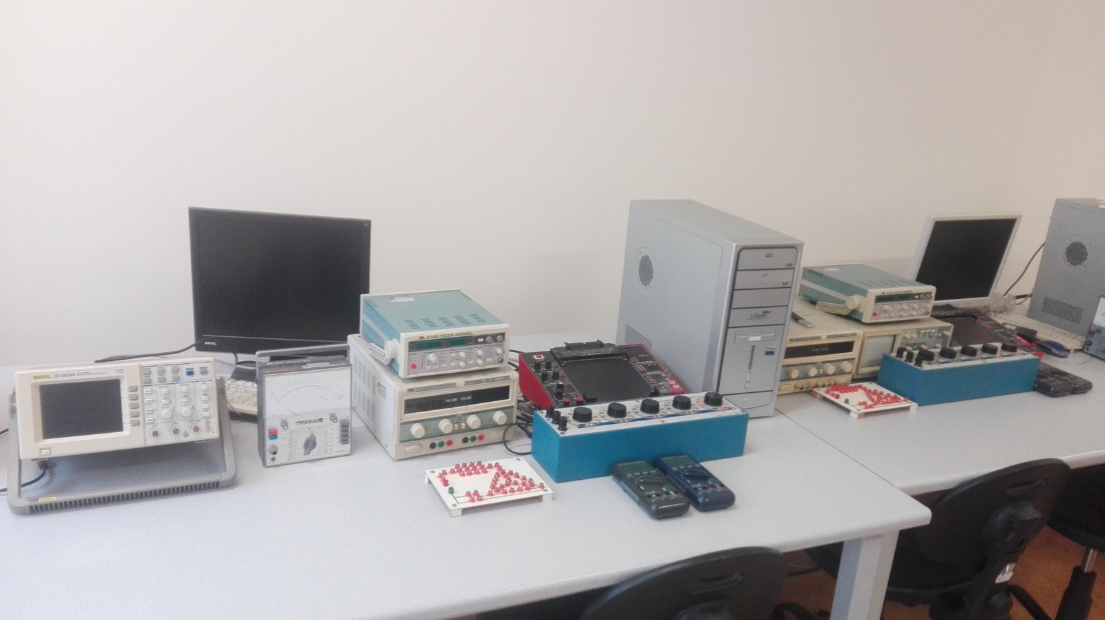 W Pracowni elektronicznej realizowane są ćwiczenia praktyczne związane z podstawami teorii obwodów elektrycznych, podstawami elektroniki analogowej i cyfrowej oraz komputerowymi systemami pomiarowymi.