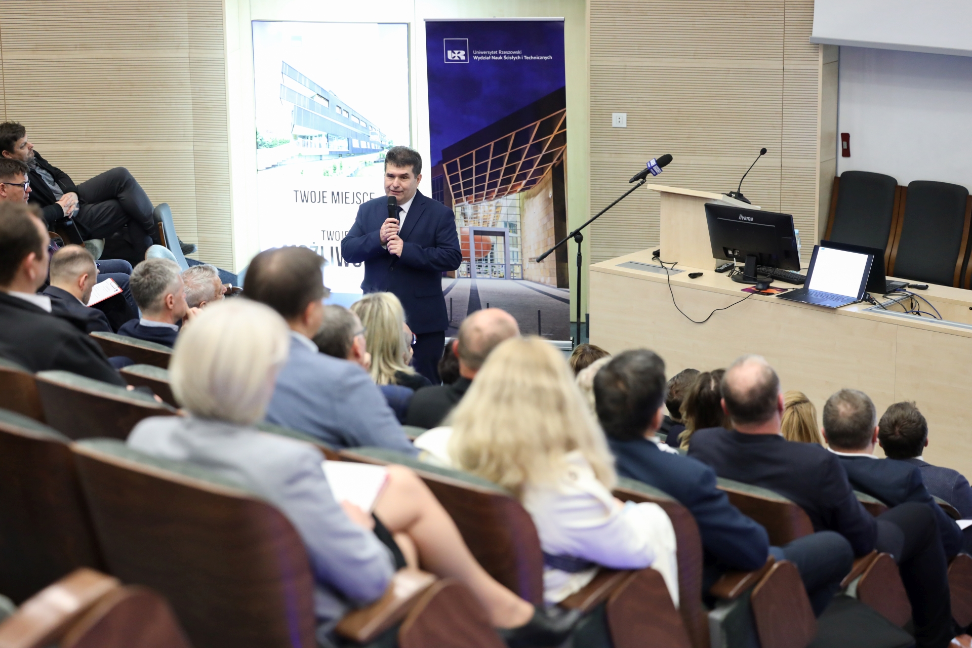 W dalszej części wydarzenia głos zabrał przedstawiciel partnerów zewnętrznych, Jarosław Reczek – Dyrektor Generalny Izby Podkarpackiego Samorządu Gospodarczego, wyrażając uznanie dla podjętej inicjatywy.
