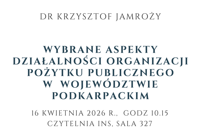16 kwietnia 2026 r., g. 10.15, Czytelnia Instytutu Nauk Socjologicznych, s. 327.