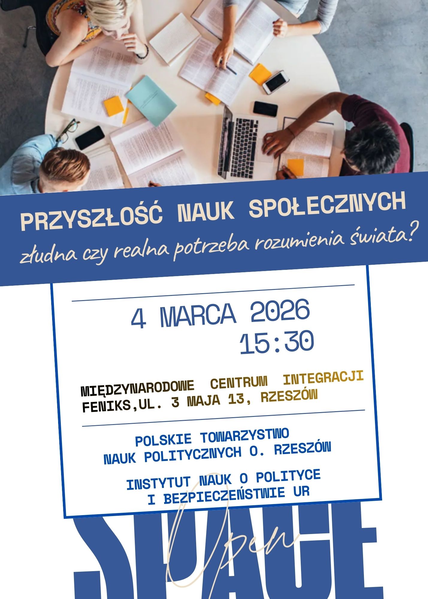 4 marca 2026 r. w Międzynarodowym Centrum Integracji Feniks odbyła się debata w formule Open Space Technology poświęcona przyszłości nauk społecznych, ze szczególnym uwzględnieniem kierunków: politologia, bezpieczeństwo wewnętrzne oraz stosunki międzynarodowe. W debacie wzięło udział 30 studentów Instytutu Nauk o Polityce i Bezpieczeństwie. Spotkanie miało na celu włączenie młodzieży akademickiej w debatę na temat przyszłości nauk społecznych, a także zagrożeń i ograniczeń jakie niesie rozwój sztucznej inteligencji, zwłaszcza w kontekście szans zatrudnienia absolwentów kierunków społecznych.