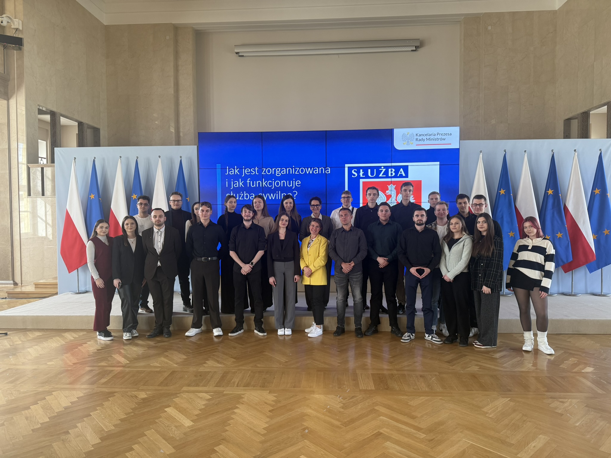 16 marca 2026 r. studenci kierunków politologia oraz stosunki międzynarodowe mieli okazję odwiedzić Kancelarię Prezesa Rady Ministrów. Wizyta odbyła się pod opieką dr Dominiki Zięby oraz dra hab. Tomasza Koziełły, prof. UR.