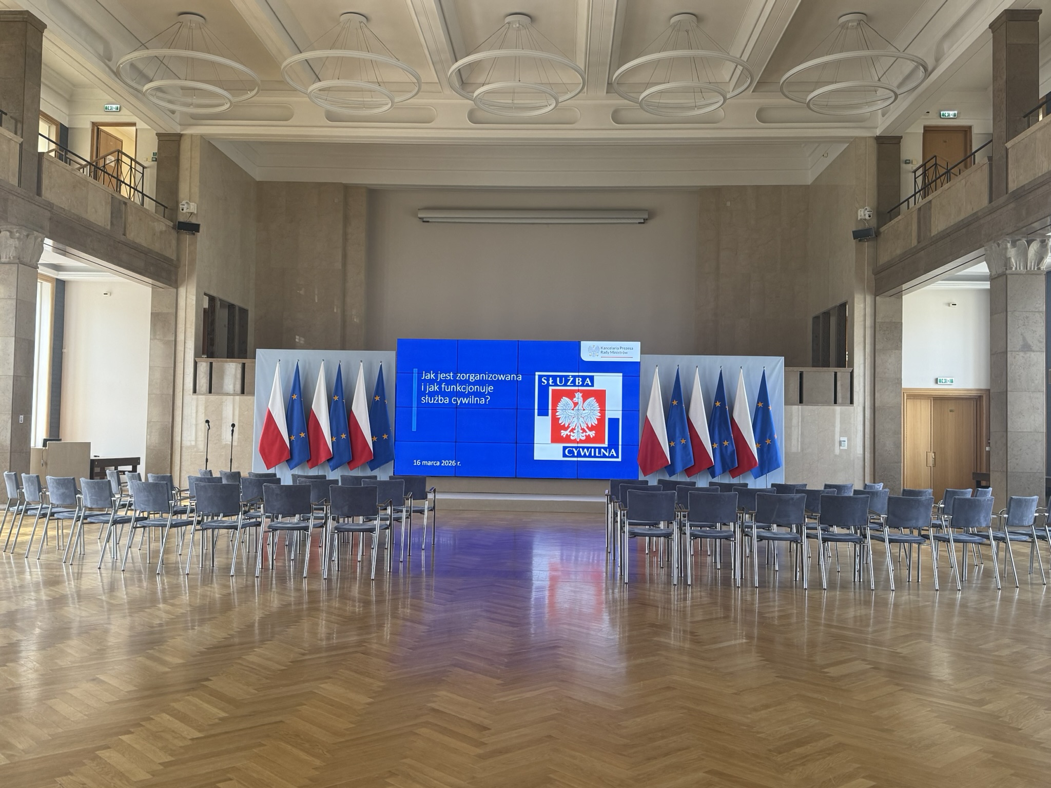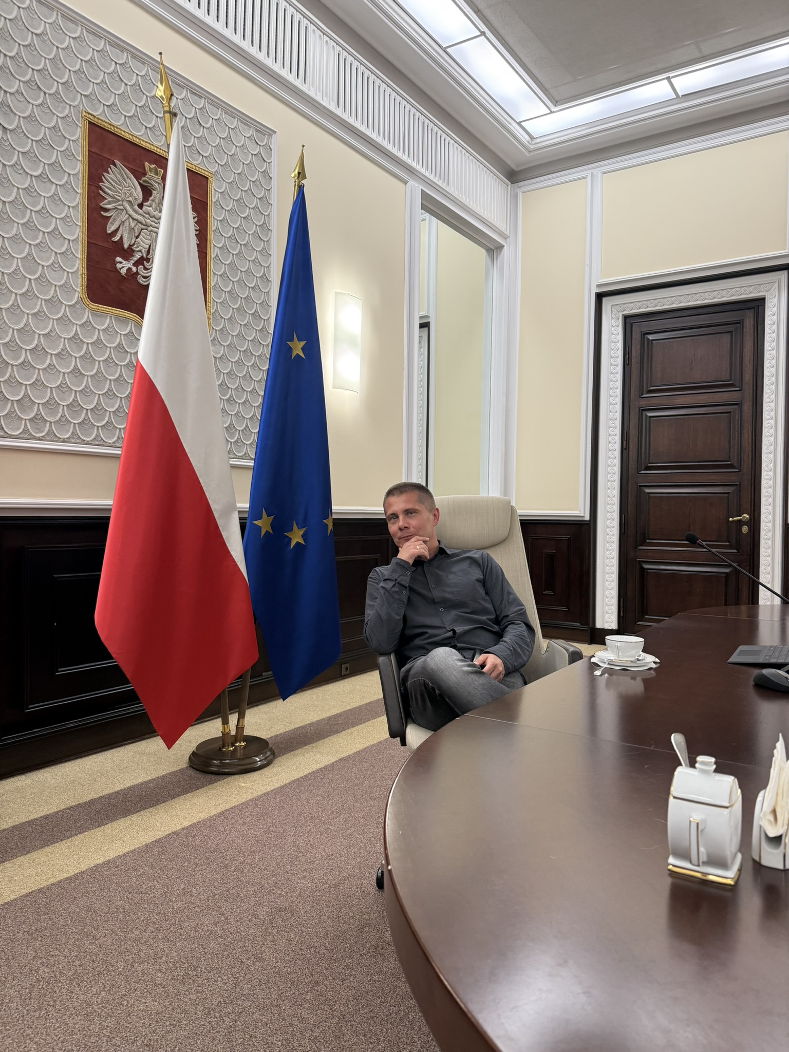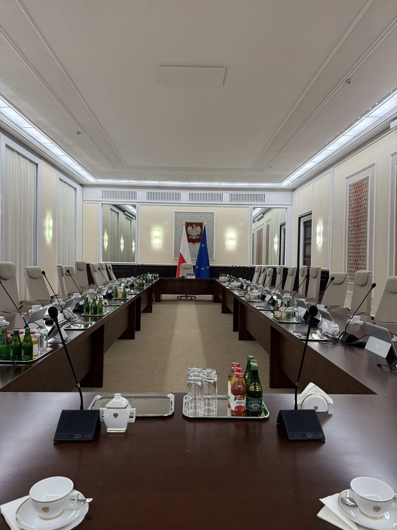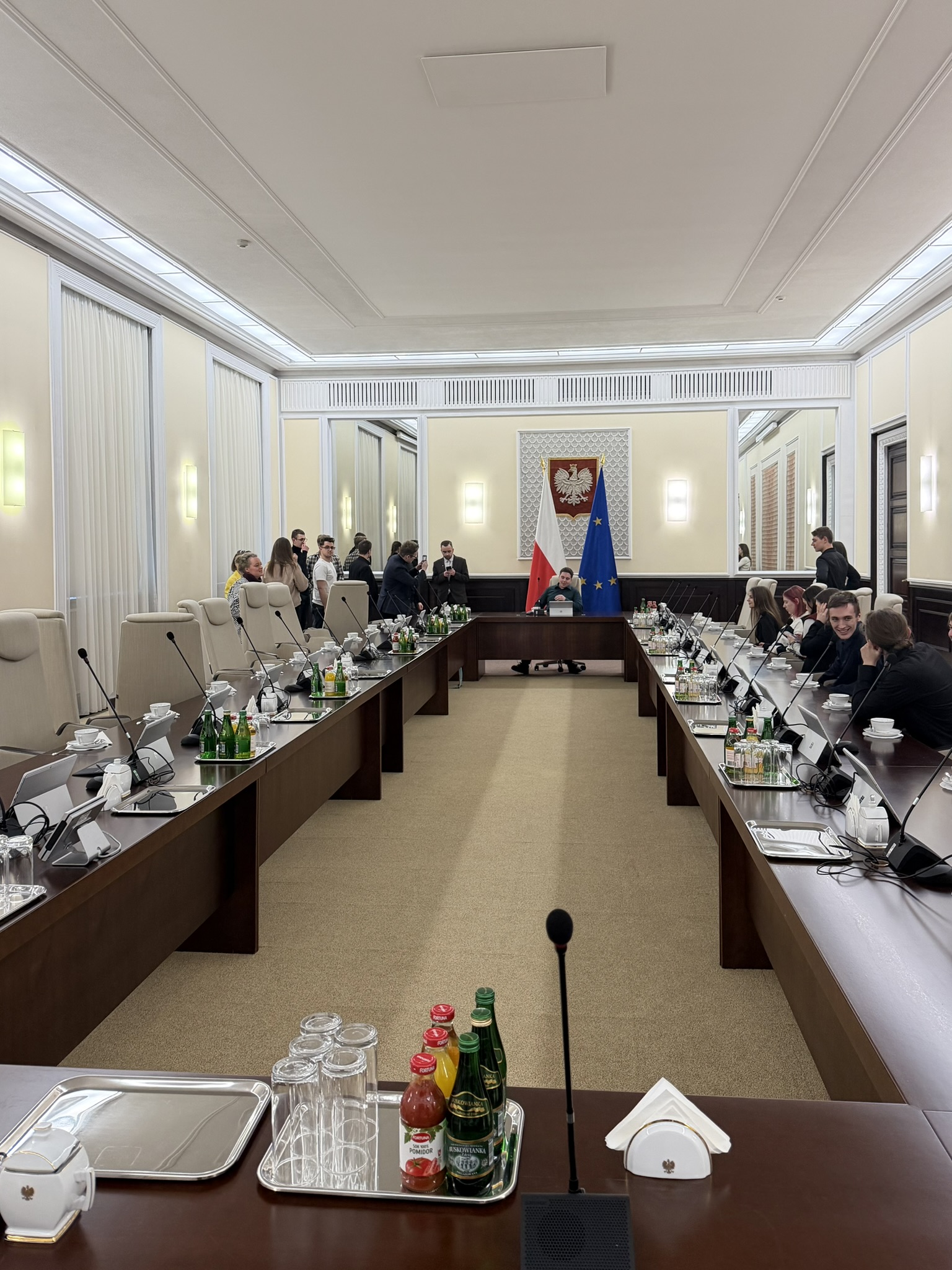 Na zakończenie wizyty studenci zwiedzili gmach KPRM. Szczególnym zainteresowaniem cieszyła się sala posiedzeń rządu, gdzie studenci mogli nie tylko zobaczyć miejsce podejmowania najważniejszych decyzji państwowych, ale także zrobić pamiątkowe zdjęcia – największą atrakcją okazała się możliwość zajęcia fotela Prezesa Rady Ministrów.