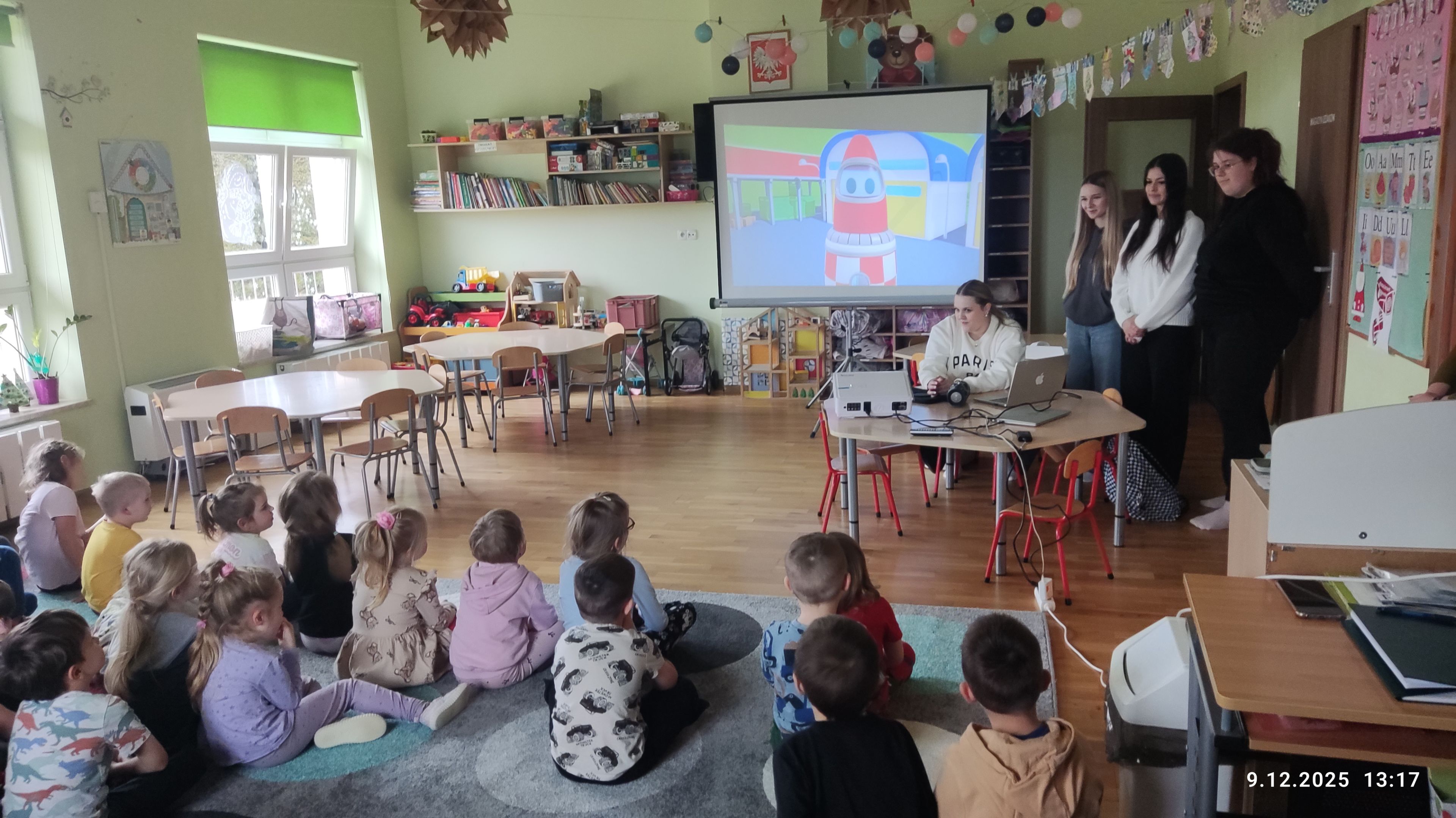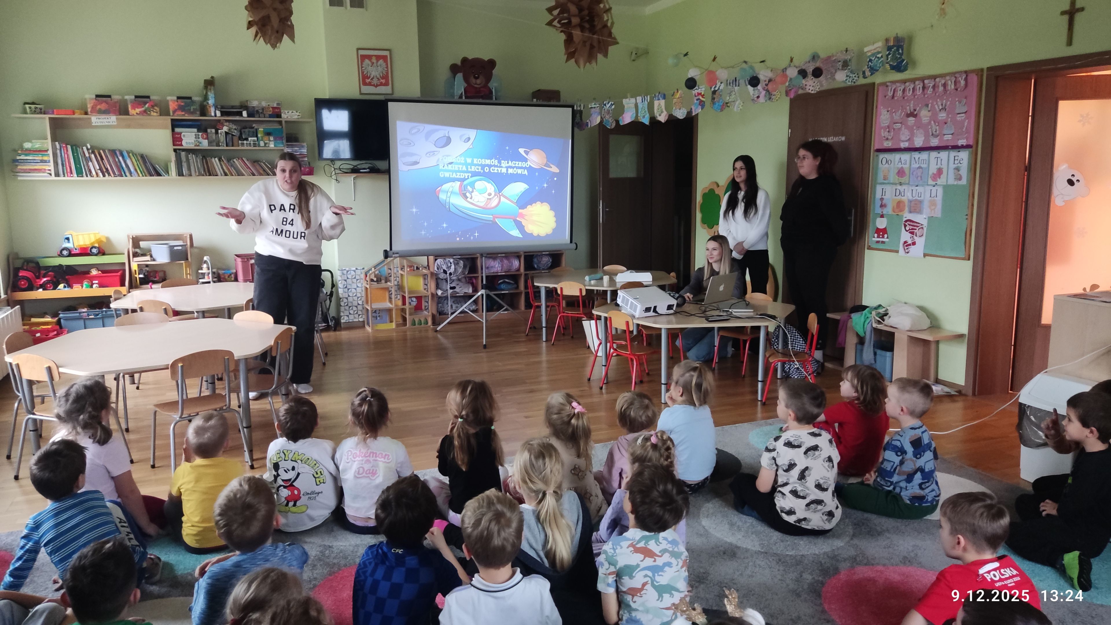 Cztery studentki pedagogiki przedszkolnej i wczesnoszkolnej należące do koła naukowego EduPower – Młodzi Odkrywcy Nauki przeprowadziły w dniu 9.12.2025 roku zajęcia z edukacji technicznej w niepublicznym przedszkolu „Wesołe Promyczki” oddział w Lutoryżu będącym interesariuszem zewnętrznym Instytutu Pedagogiki. Temat zajęć to „Lecimy w kosmos, jak działa rakieta, o czym mówią gwiazdy”. Celem zajęć było przybliżenie praw przyrody i zasad techniki wykorzystywanych do budowy rakiet kosmicznych i lotów kosmicznych. Wyjaśniono zasadę działania silnika rakietowego. Podczas zajęć zbudowane zostały rakiety z balonowym silnikiem rakietowym, które następnie wzięły udział w zawodach lotu na księżyc. W zajęciach brał też czynny udział opiekun projektów metodycznych koła dr Waldemar Lib.