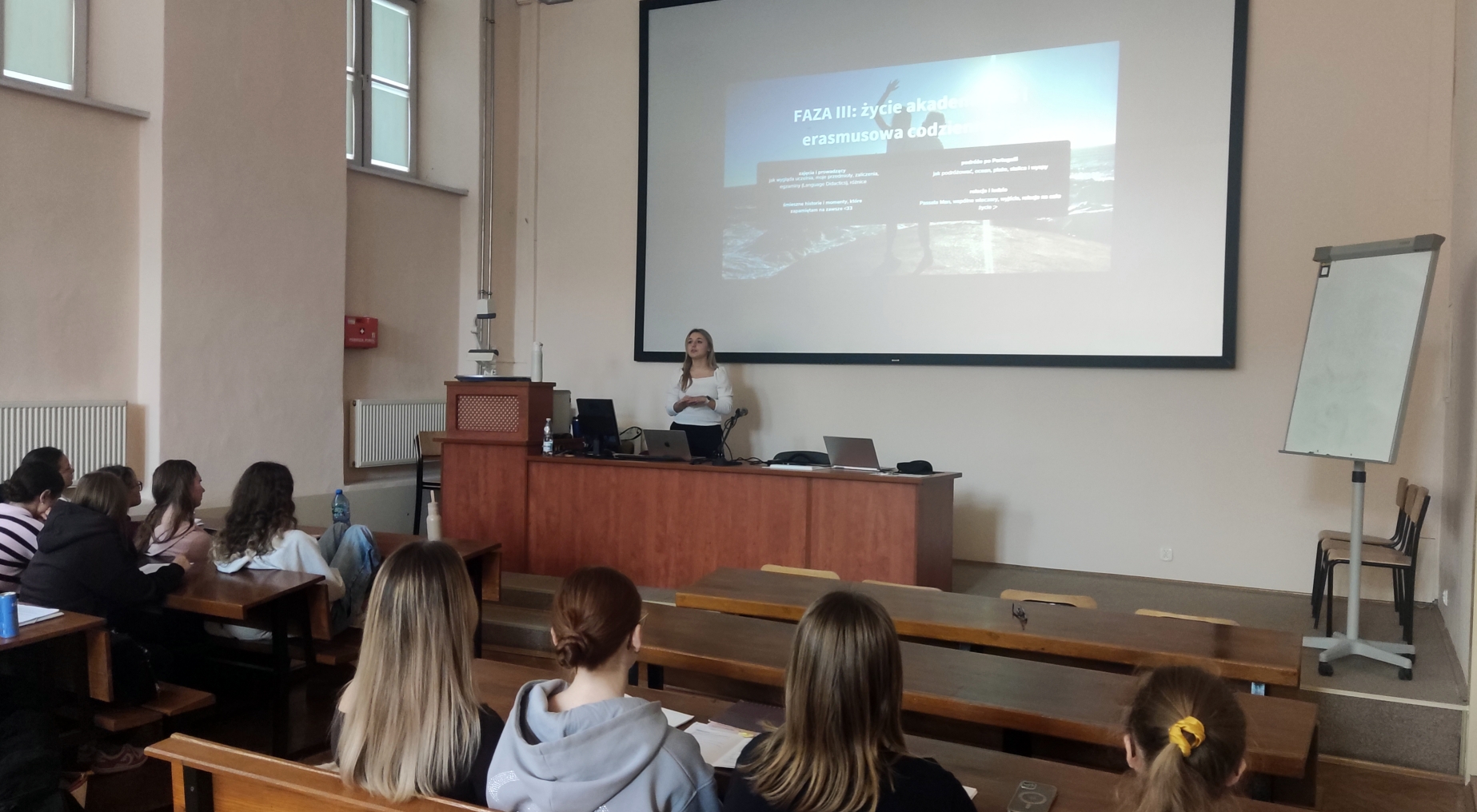 16 grudnia 2025 roku odbyło się spotkanie studentek i studentów III roku pedagogiki przedszkolnej i wczesnoszkolnej z Anną Fergisz, absolwentką mobilności Erasmus+ na Politécnico do Porto w Porto (Portugalia).