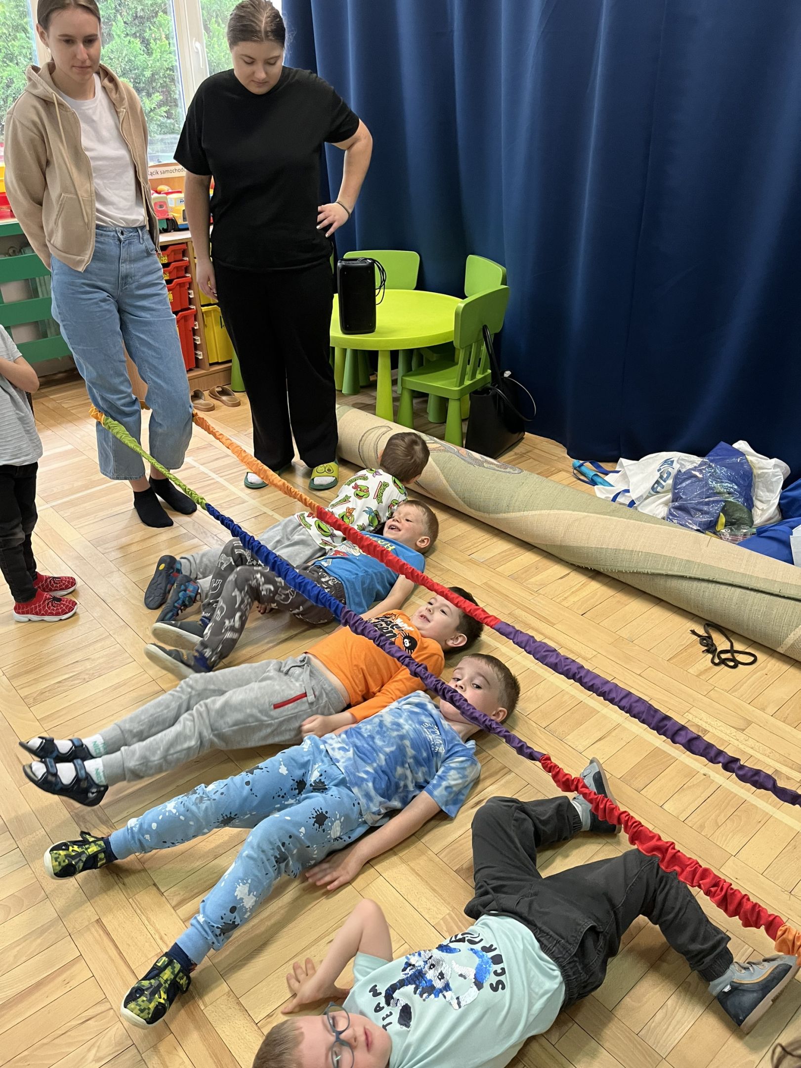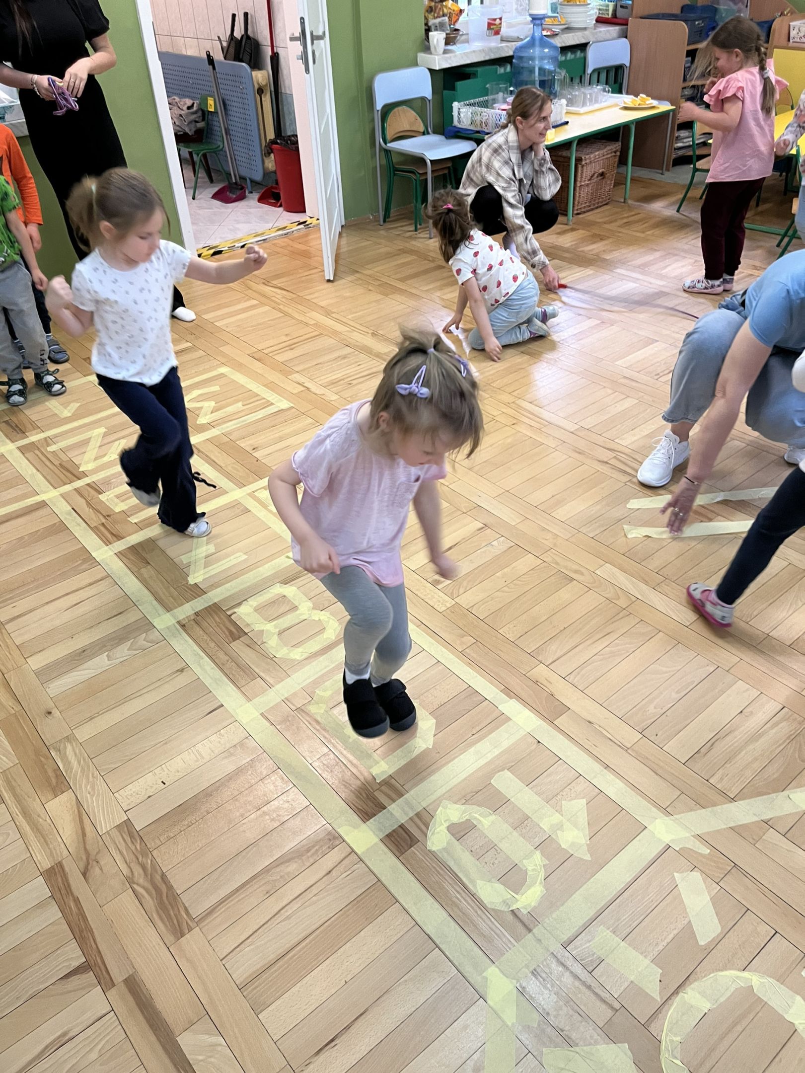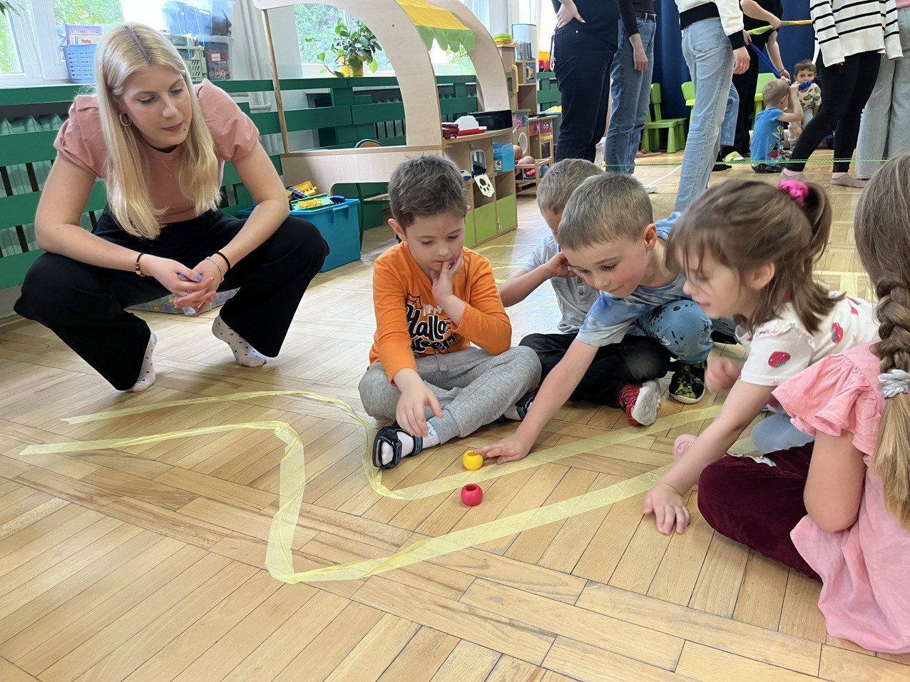 W dniu 27.05.2025r. studentki II roku kierunku pedagogika przedszkolna i wczesnoszkolna kolejny raz realizowały zajęcia z dziećmi uczęszczającymi do Przedszkola nr 29 w Rzeszowie. Tym razem zaprosiły przedszkolaki do najpopularniejszych gier i zabaw, w które bawiły się wcześniejsze pokolenia dzieci. Mimo upływu czasu, tradycyjne zabawy takie jak: gra w klasy i przeskoki przez gumę spotkały się z dużym zainteresowaniem uczestników zajęć. Wywołały wiele pozytywnych emocji.