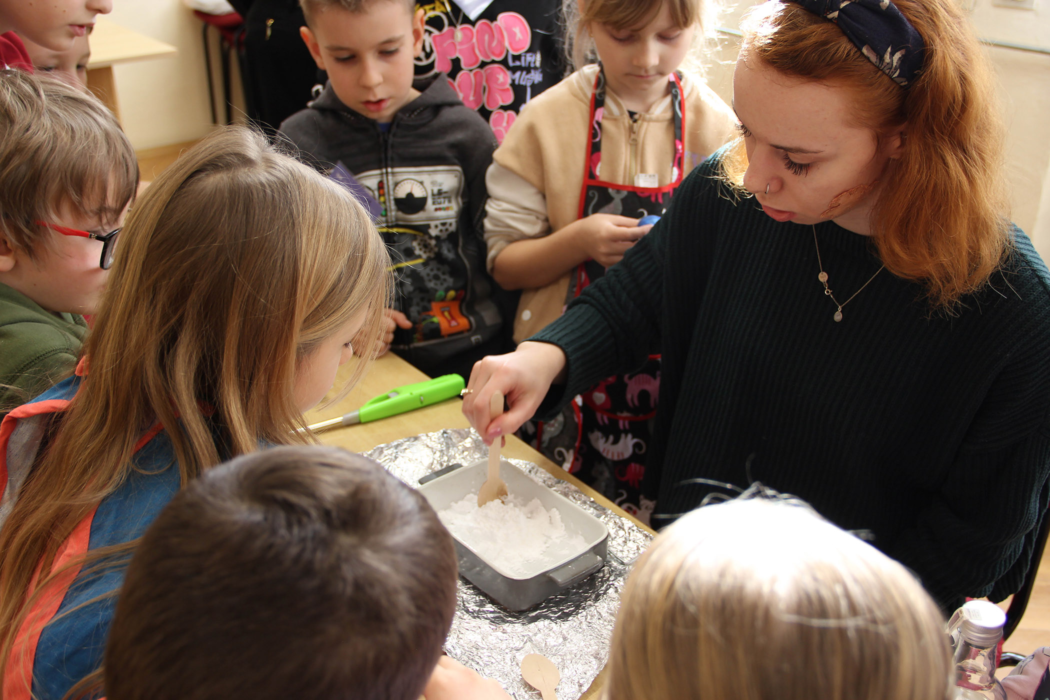 Podczas spotkania młodzi studenci mieli okazję uczestniczyć w różnorodnych aktywnościach, które łączyły teorię z praktyką. Członkowie Koła Naukowego "Edukacja Bez Granic" przygotowali interaktywne prezentacje, eksperymenty oraz ćwiczenia, które w angażujący sposób przedstawiały omawiane zagadnienia. Dzięki kreatywnemu podejściu studentek koła naukowego, dzieci mogły poczuć się jak prawdziwi studenci, odkrywając tajniki wiedzy w atmosferze zabawy i współpracy. Wspólne warsztaty były doskonałą okazją do rozwijania kompetencji poznawczych, krytycznego myślenia oraz pracy w grupie. Uczestnicy wykazali się ogromnym zaangażowaniem i entuzjazmem, co potwierdziło, jak istotne są tego typu inicjatywy w kształtowaniu pasji do nauki już od najmłodszych lat.