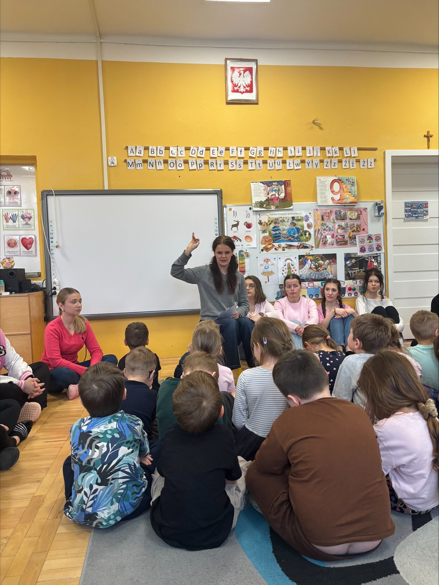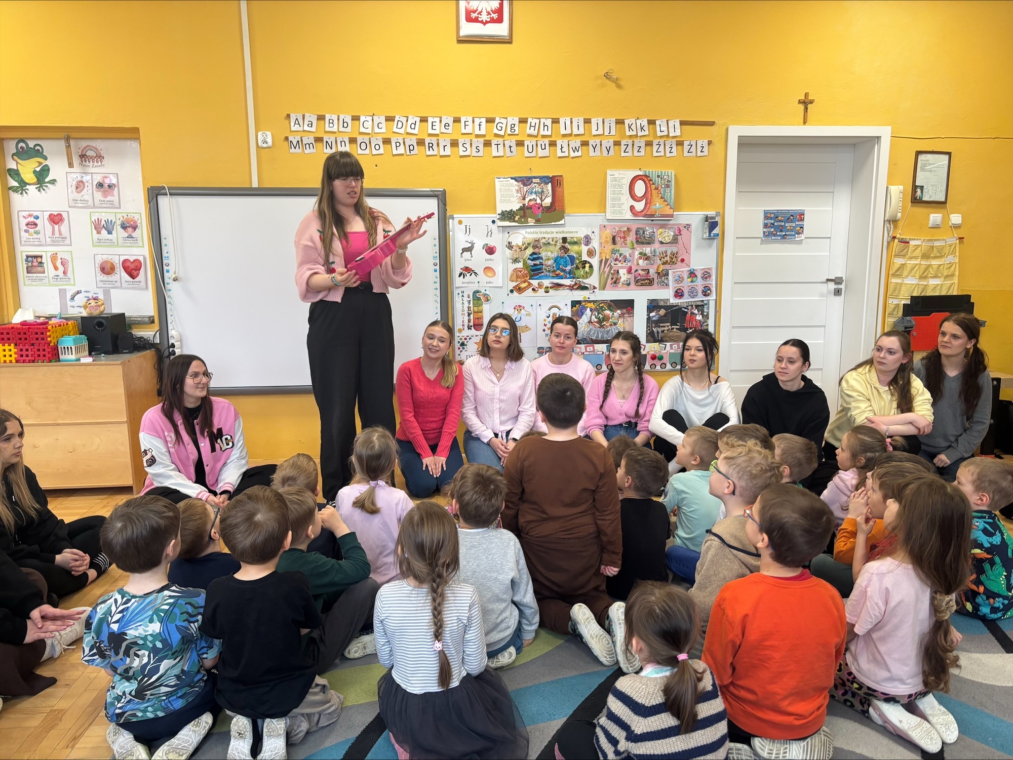 Studentki II roku PPiW po raz kolejny spotkały się z przedszkolakami z Przedszkola nr 29 w Rzeszowie, podczas którego przeprowadziły zabawy w ramach realizacji zadań zawartych w innowacji pedagogicznej o charakterze programowym. Studentki zaproponowały aktywności dotyczące relacji, rozwijania umiejętności aktywnego słuchania i empatii wobec innych. Opowiadając o przygodach dobrze znanego dzieciom bohatera promowały życzliwość, szacunek i otwartość w relacjach międzyludzkich. Ponadto przedszkolaki poznały skuteczne strategie radzenia sobie z trudnymi sytuacjami komunikacyjnymi. Nie zabrakło wesołych zabaw przy muzyce i pracy plastycznej.
