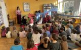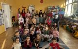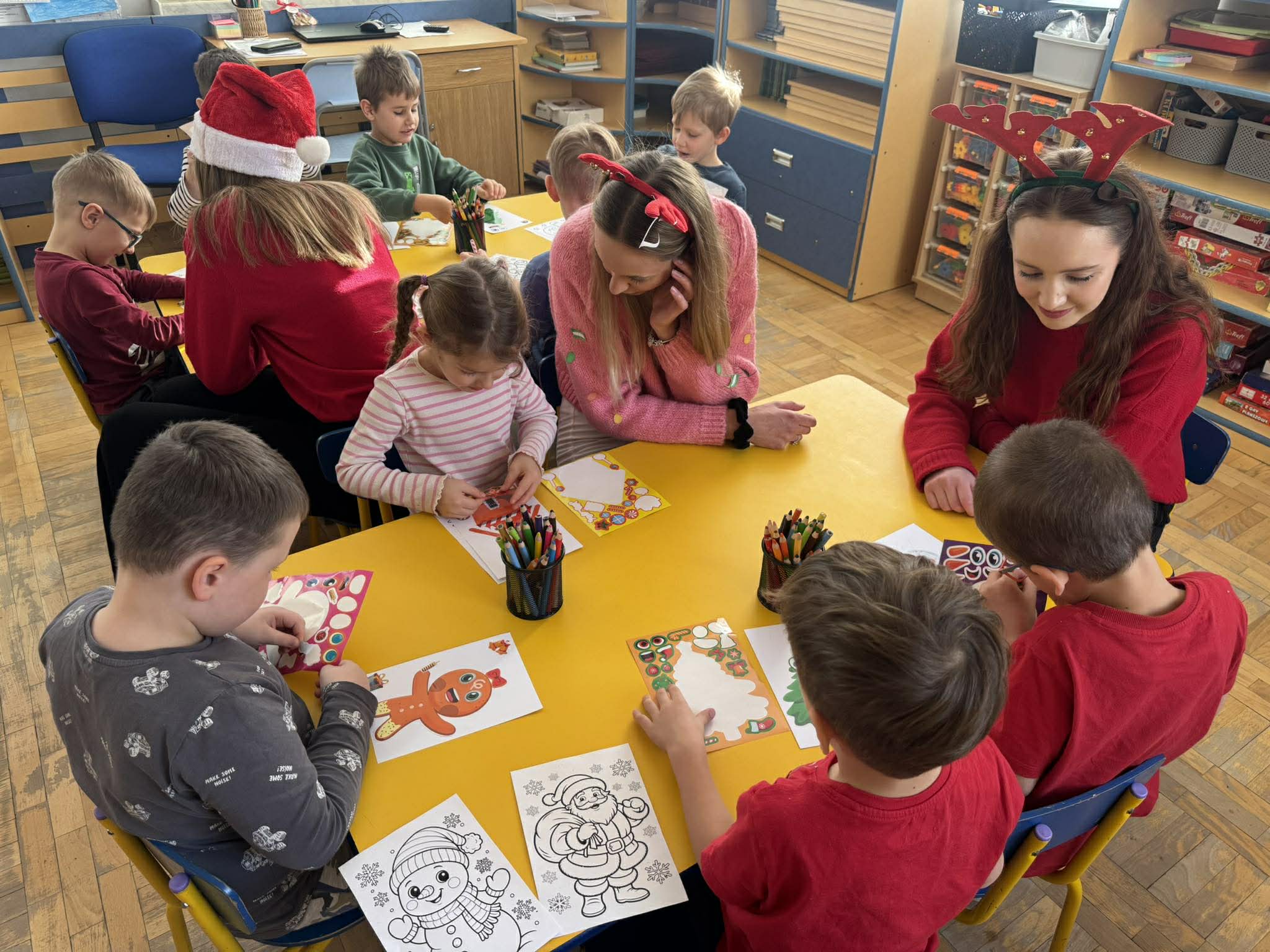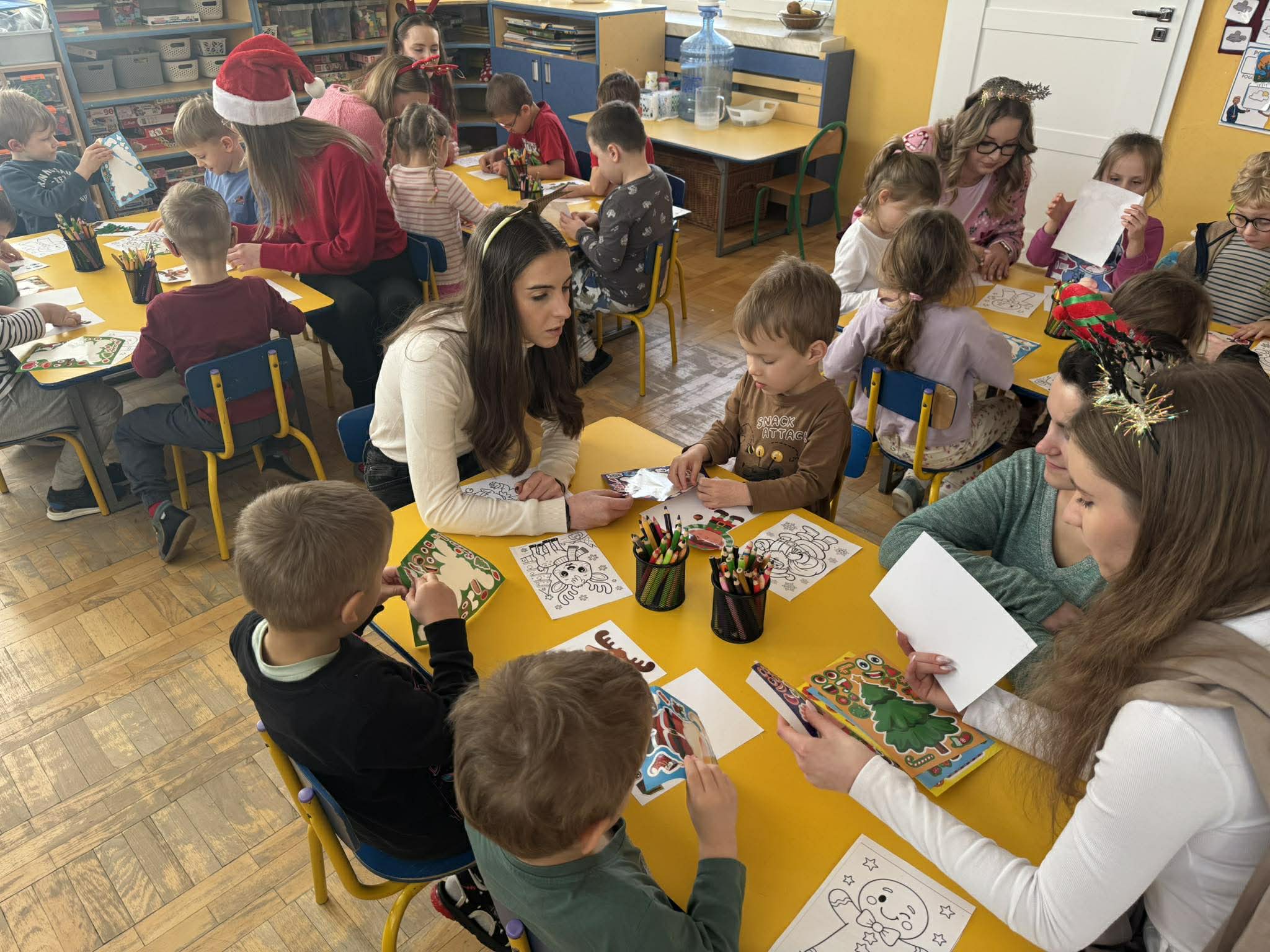 Świąteczny pociąg marzeń. Studentki I roku pedagogiki przedszkolnej i wczesnoszkolnej realizują zajęcia u interesariusza zewnętrznego