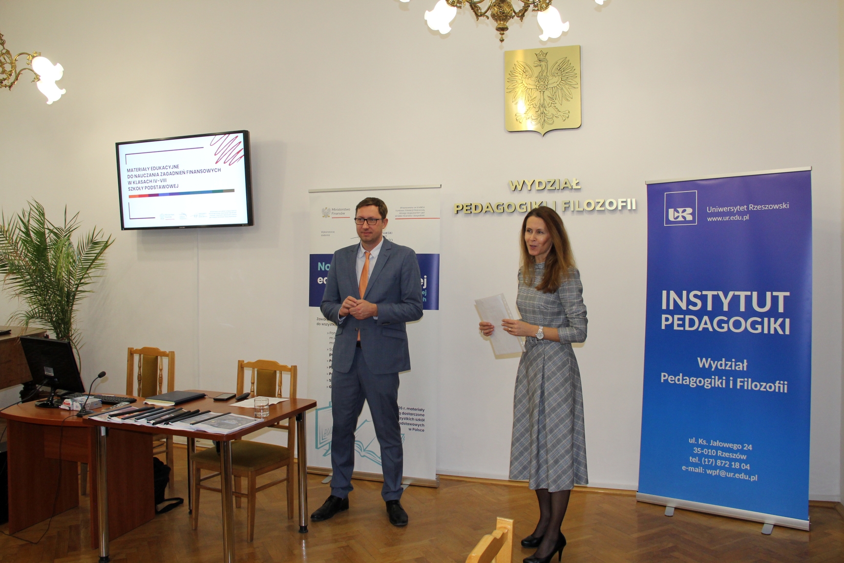 Warsztaty otworzyli: dr hab. prof. UR Jadwiga Daszykowska-Tobiasz, dyrektor Instytutu Pedagogiki, oraz Krzysztof Ostafiński, dyrektor projektów edukacyjnych w Warszawskim Instytucie Bankowości.