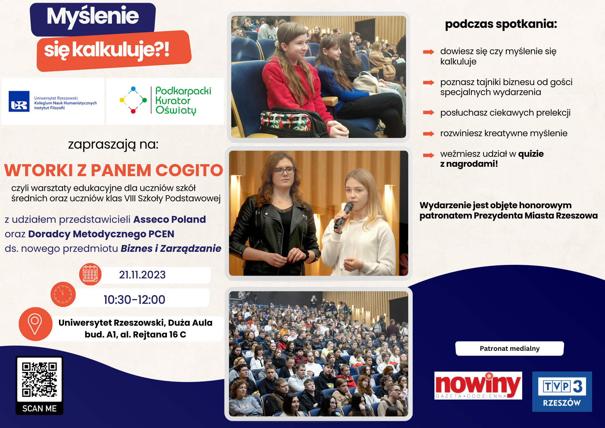 Wraz z Kuratorium Oświaty w Rzeszowie zapraszamy do udziału w kolejnym spotkaniu z cyklu Wtorki z Panem Cogito!