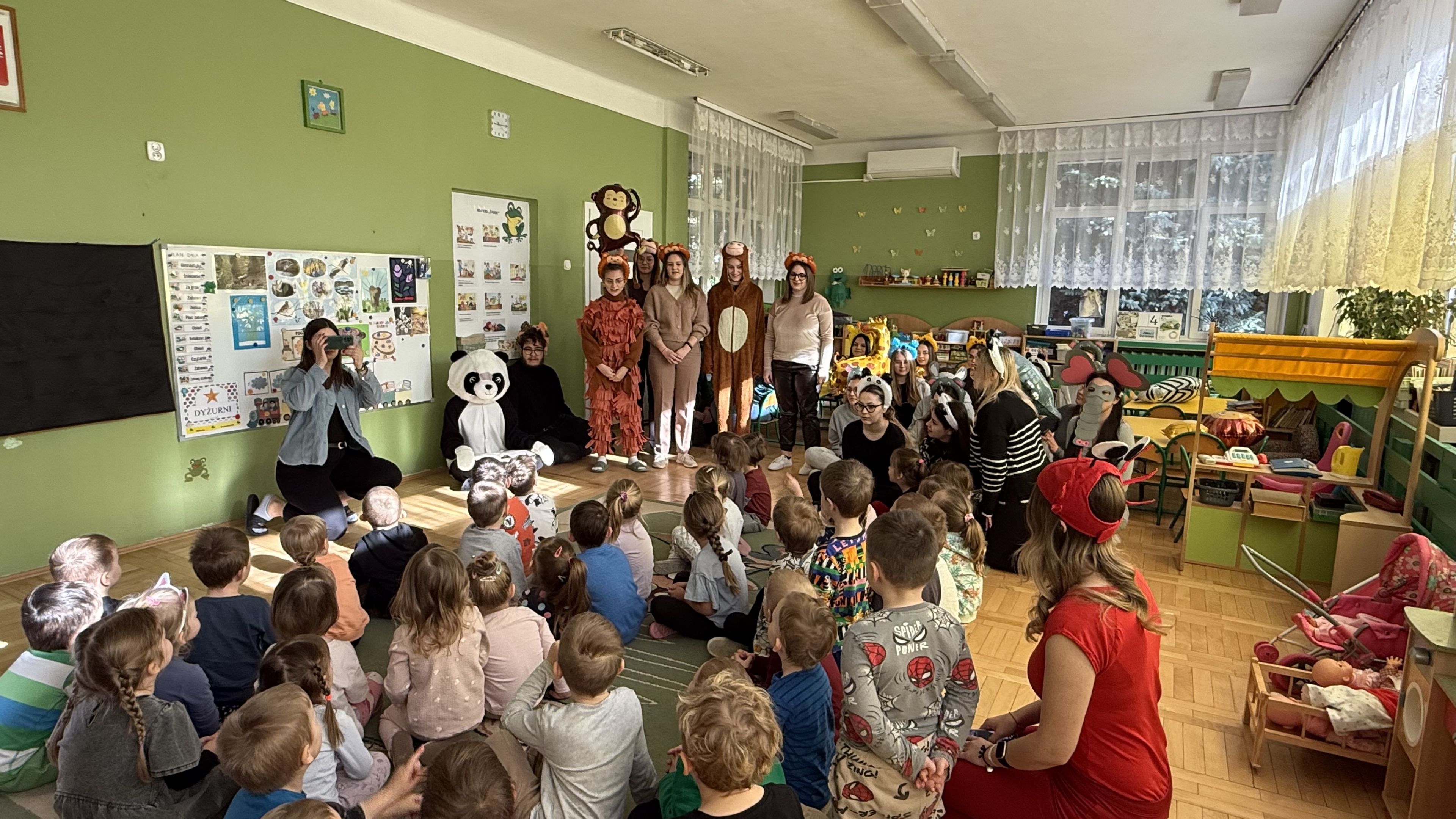 Największą atrakcją okazała się panda – to właśnie ona wzbudziła najwięcej radości i entuzjazmu wśród dzieci. Przedszkolaki z uśmiechem na twarzach uczestniczyły w każdej zabawie, a ich zaangażowanie i radość były najlepszym dowodem na to, że zajęcia były udane.