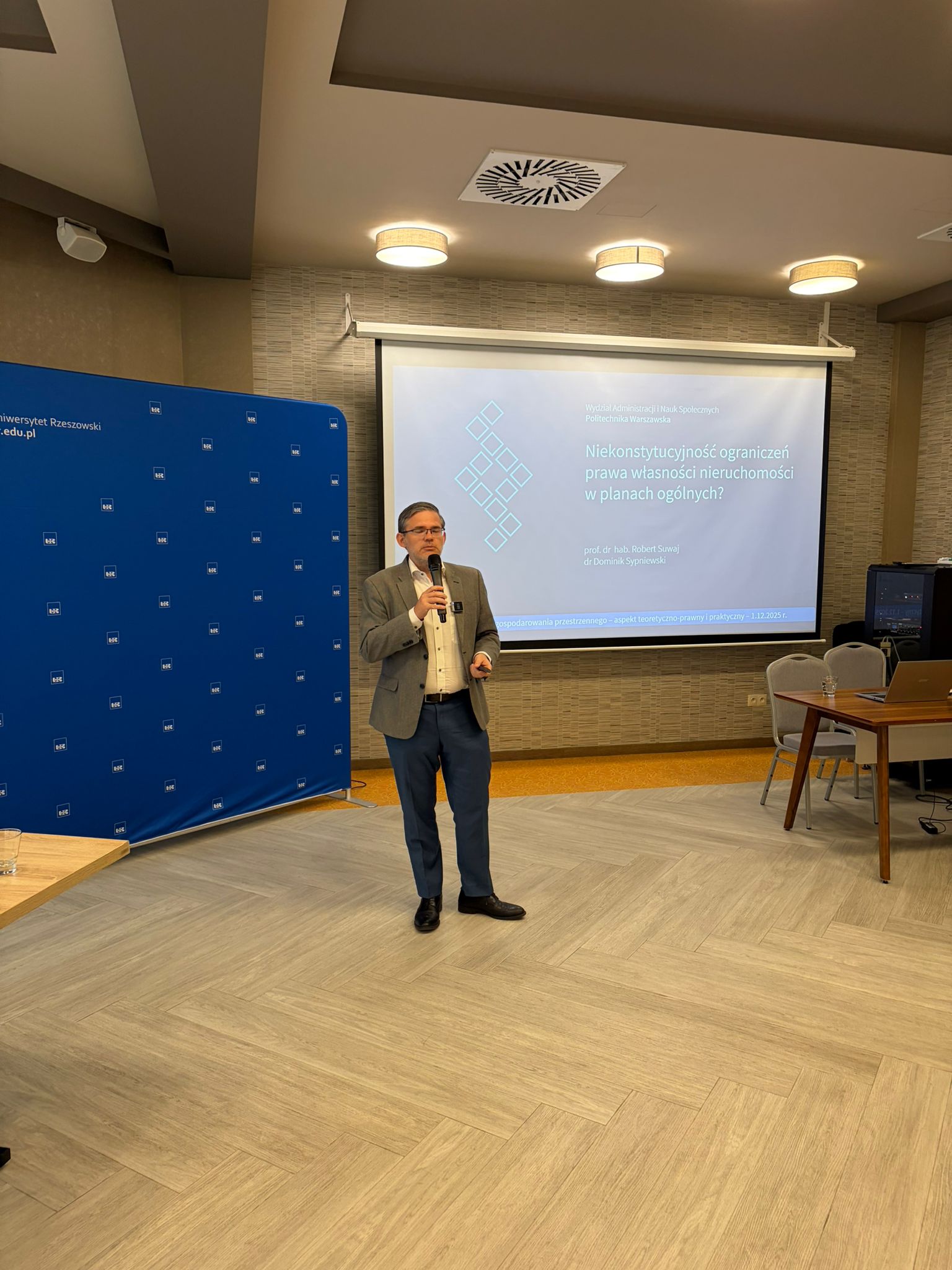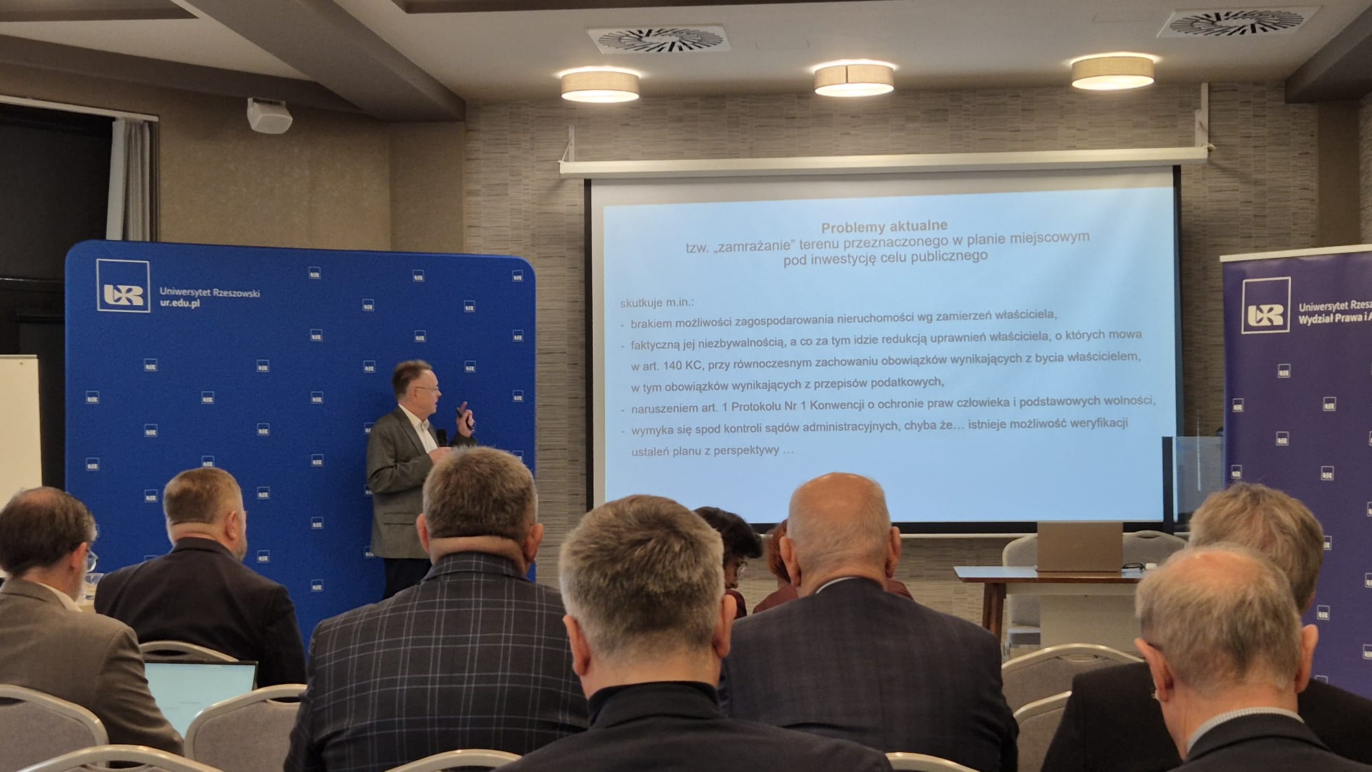 W bloku wprowadzającym prelegenci poruszyli fundamentalne zagadnienia reformy planistycznej. Prof. dr hab. Bronisław Sitek przedstawił historyczną perspektywę, wygłaszając referat pt. „Od Witruwiusza do współczesnych planów zagospodarowania przestrzennego. Racjonalność, proporcja i pożytek publiczny w porządku prawnym”. Prof. dr hab. Marek Szewczyk analizował plan ogólny gminy, ujmując go jako instrument wywłaszczeń de facto i wskazując jednocześnie na jego implikacje dla praw właścicieli. Prof. dr hab. Tomasz Bąkowski wygłosił referat pt. „Aktualne i prognozowane problemy w obszarze prawa zagospodarowania przestrzenią, podkreślając wyzwania systemowe po nowelizacji. Dr Dominik Sypniewski zakwestionował konstytucyjność ograniczeń prawa własności nieruchomości w planach ogólnych, prowokując tym samym dyskusję o granicach władztwa planistycznego. Zwieńczeniem sesji był referat dr. hab. Zbigniewa Czarnika, prof. WSPiA Rzeszowskiej Szkoły Wyższej, poświęcony planowi ogólnemu gminy jako aktowi kształtującemu prawo do nieruchomości.