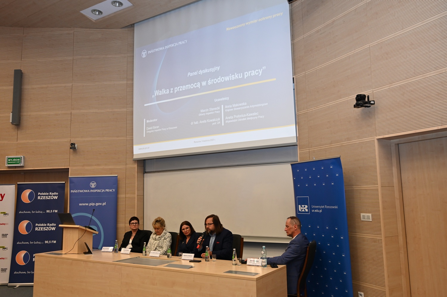 Konferencję zwieńczył panel dyskusyjny pt. „Walka z przemocą w środowisku pracy” z udziałem m.in. Pani dr hab. Anety Kowalczyk, prof. UR – Prodziekan WPiA ds. jakości kształcenia i współpracy z otoczeniem.