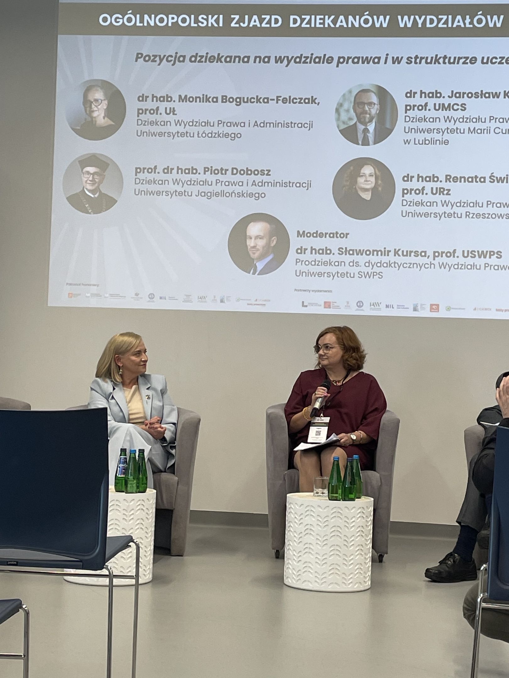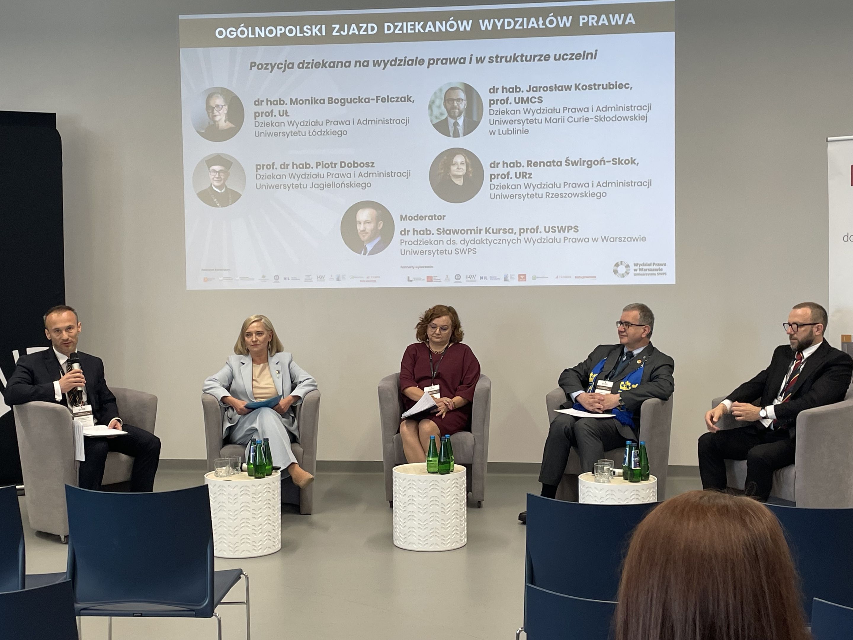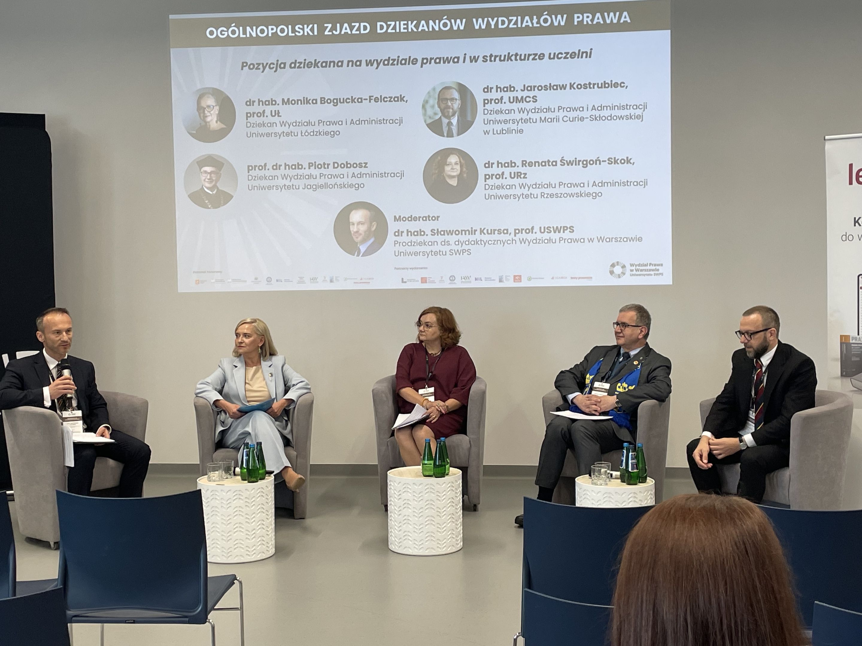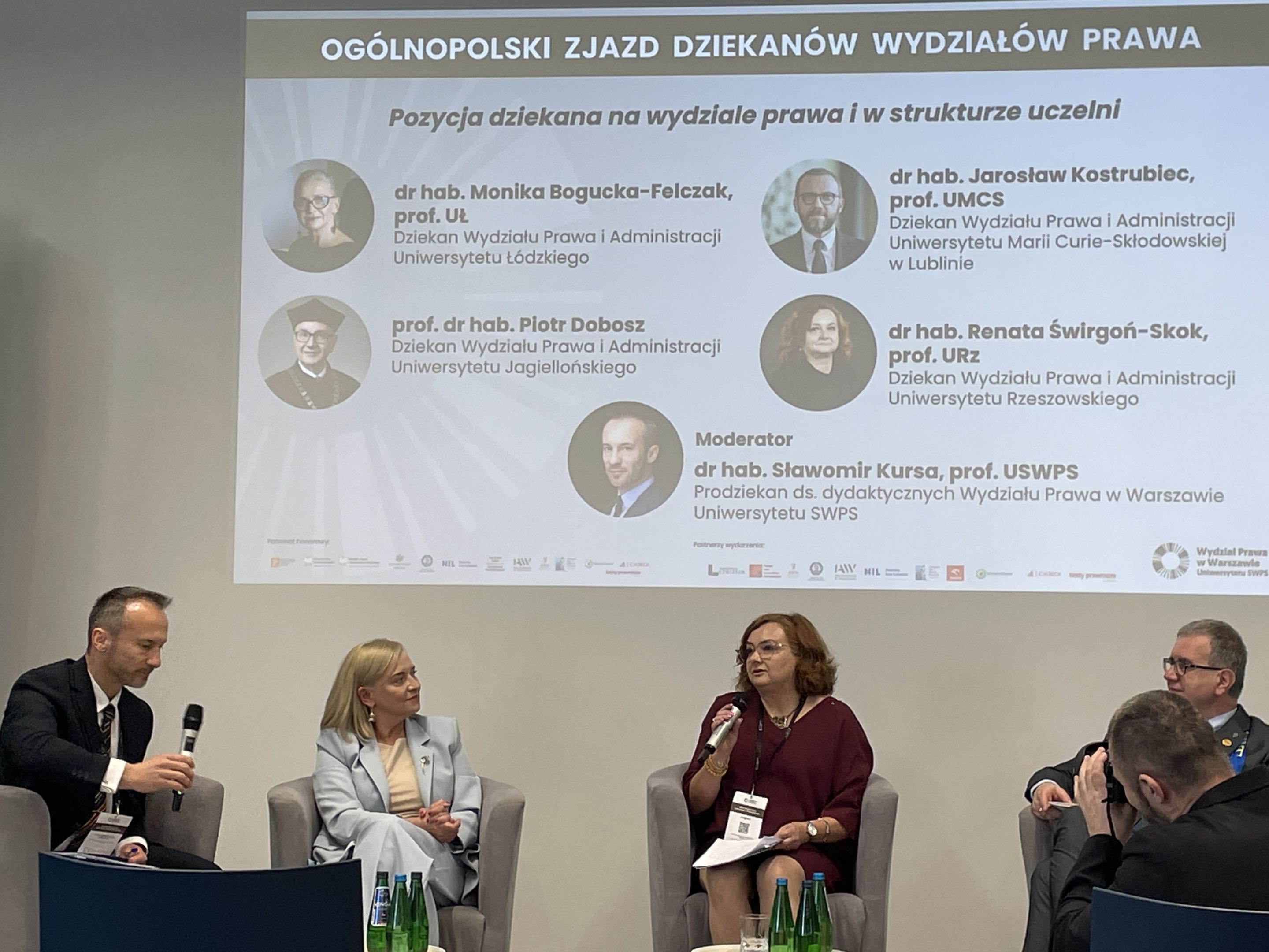 W dniu 22.05.2025 r. Dziekan WPiA UR, dr hab. Renata Świrgoń-Skok, prof. UR, wzięła udział w panelu dyskusyjnym poświęconym pozycji dziekana na wydziale prawa i w strukturze uczelni. Panel ten stanowił ważną platformę do wymiany doświadczeń i poglądów na temat roli władz wydziałów w zarządzaniu jednostkami akademickimi.