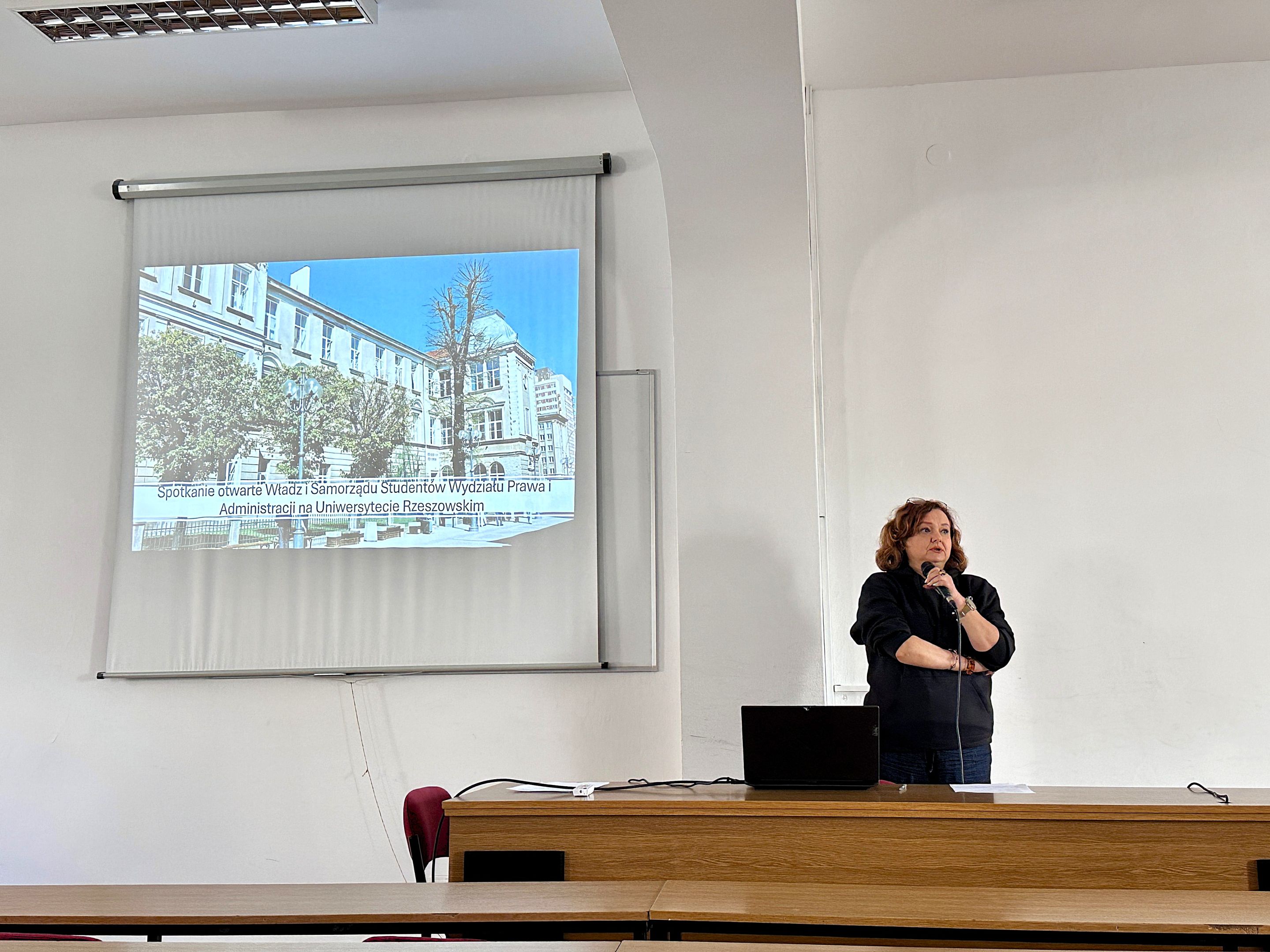 Spotkanie otworzyło wystąpienie Dziekan Wydziału Prawa i Administracji dr hab. Renaty Świrgoń-Skok, prof. UR, podczas którego poruszono kwestie istotne dla funkcjonowania Wydziału oraz społeczności akademickiej. Następnie uczestnicy mieli możliwość zadawania pytań Władzom Wydziału. Była to cenna okazja do rozmowy na tematy związane z funkcjonowaniem uczelni, życiem akademickim oraz sprawami ważnymi dla studentek i studentów.