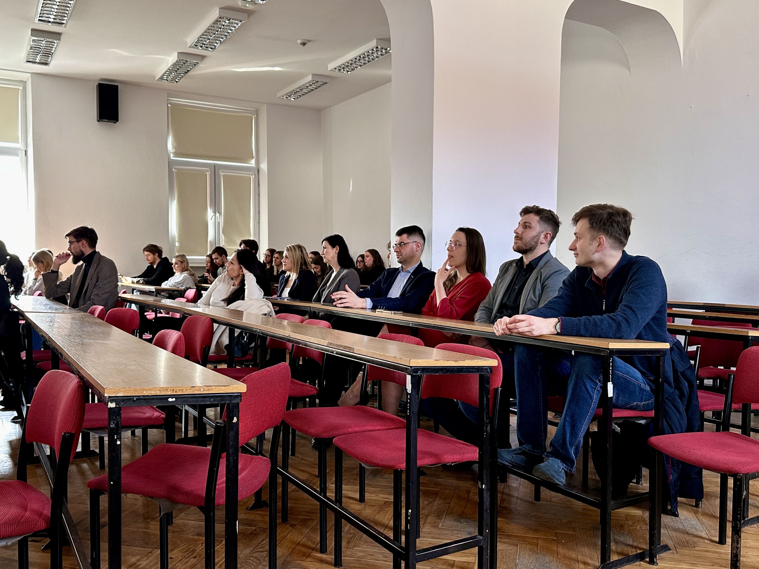 W dniu 26.03.2026 r. odbyło się Spotkanie otwarte z udziałem Władz Wydziału oraz Samorządu Studentów WPA UR. W spotkaniu udział wzięli: Dziekan Wydziału Prawa i Administracji dr hab. Renata Świrgoń-Skok, prof. UR, Prodziekan ds. studenckich dr hab. Agata Barczewska-Dziobek, prof. UR, Prodziekan ds. jakości kształcenia i współpracy z otoczeniem dr hab. Aneta Kowalczyk, prof. UR, kierownicy kierunków prawo i administracja, kierownik oraz przedstawicielka dziekanatu, a także opiekunowie roczników. W wydarzeniu uczestniczyli również studenci prawa i administracji, Przewodniczący Komisji do Spraw Prawnych Jacek Hayder oraz Reprezentantka Centrum Samorządu Studentów Karolina Golba.