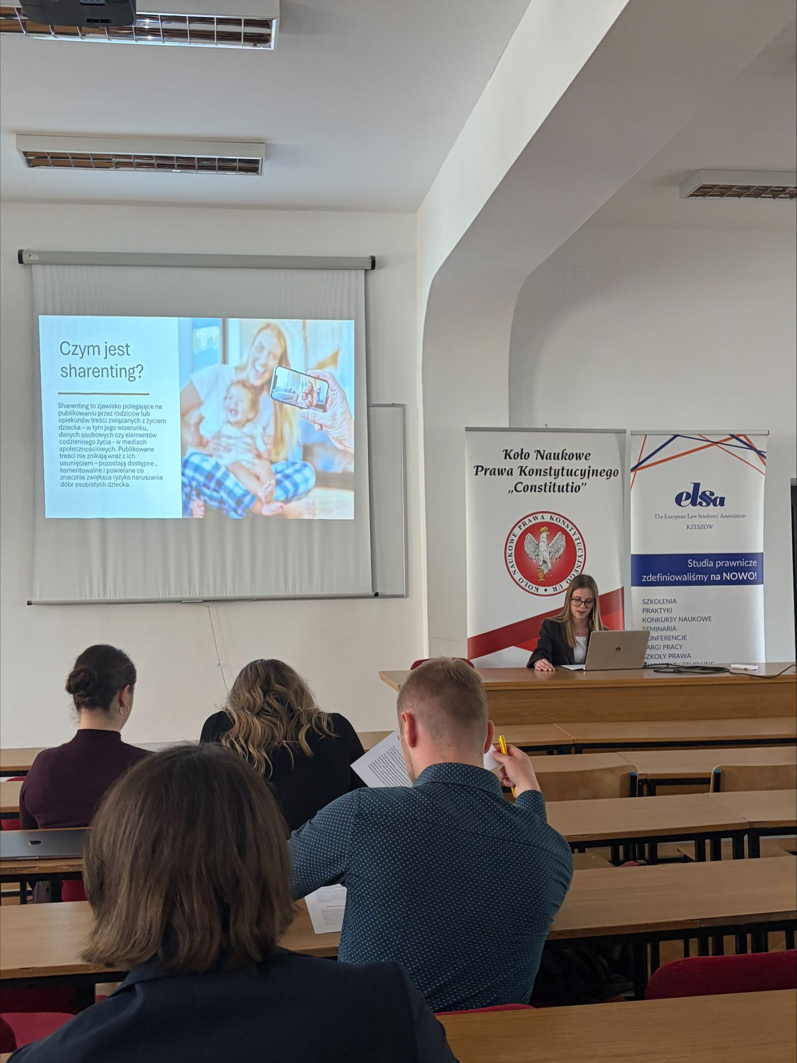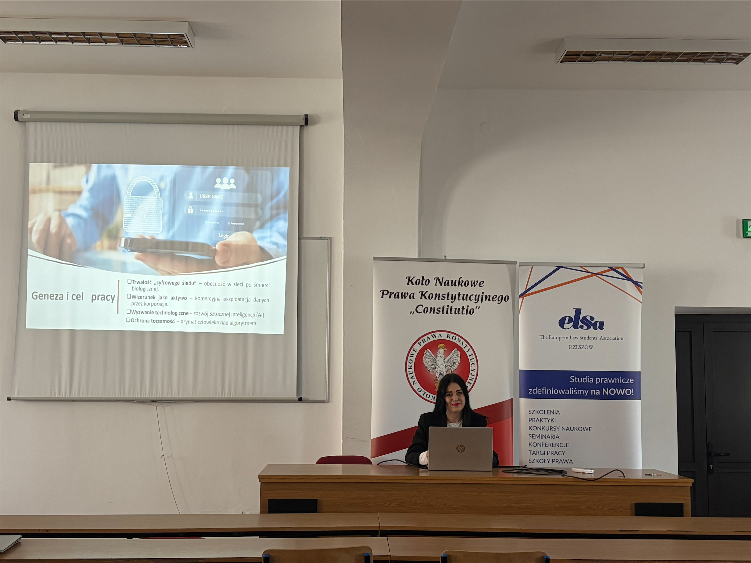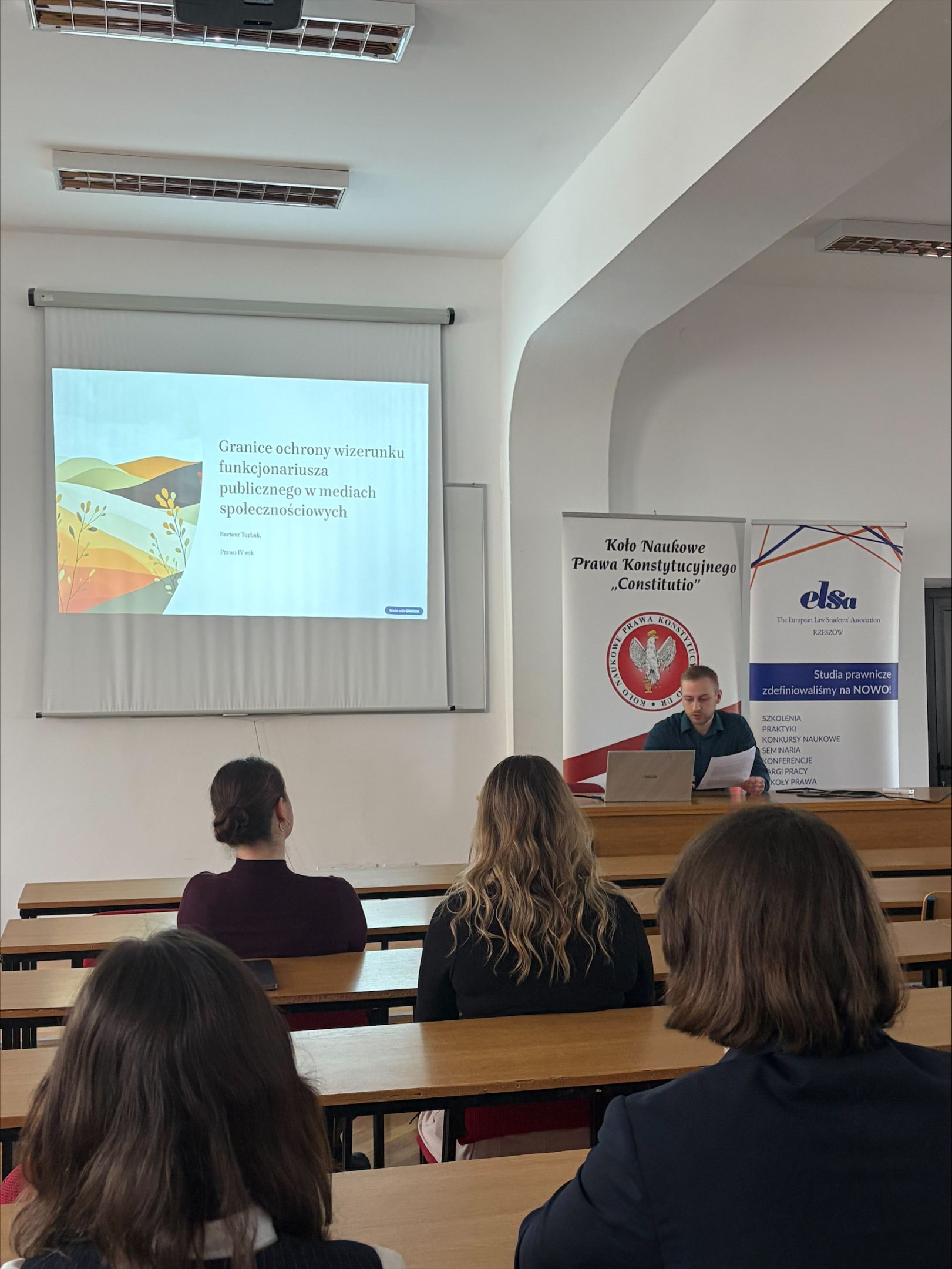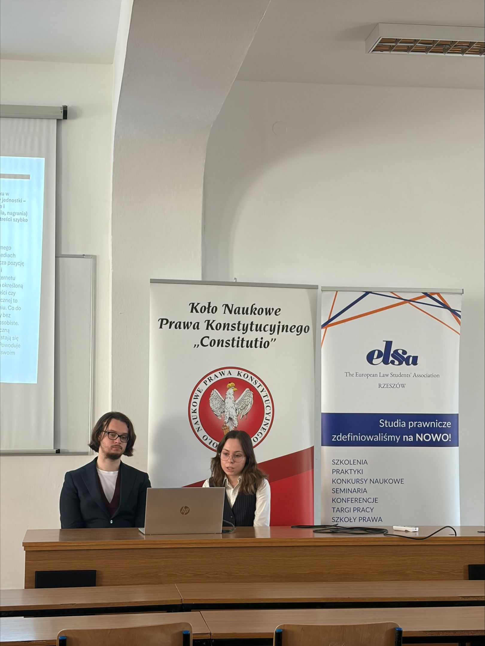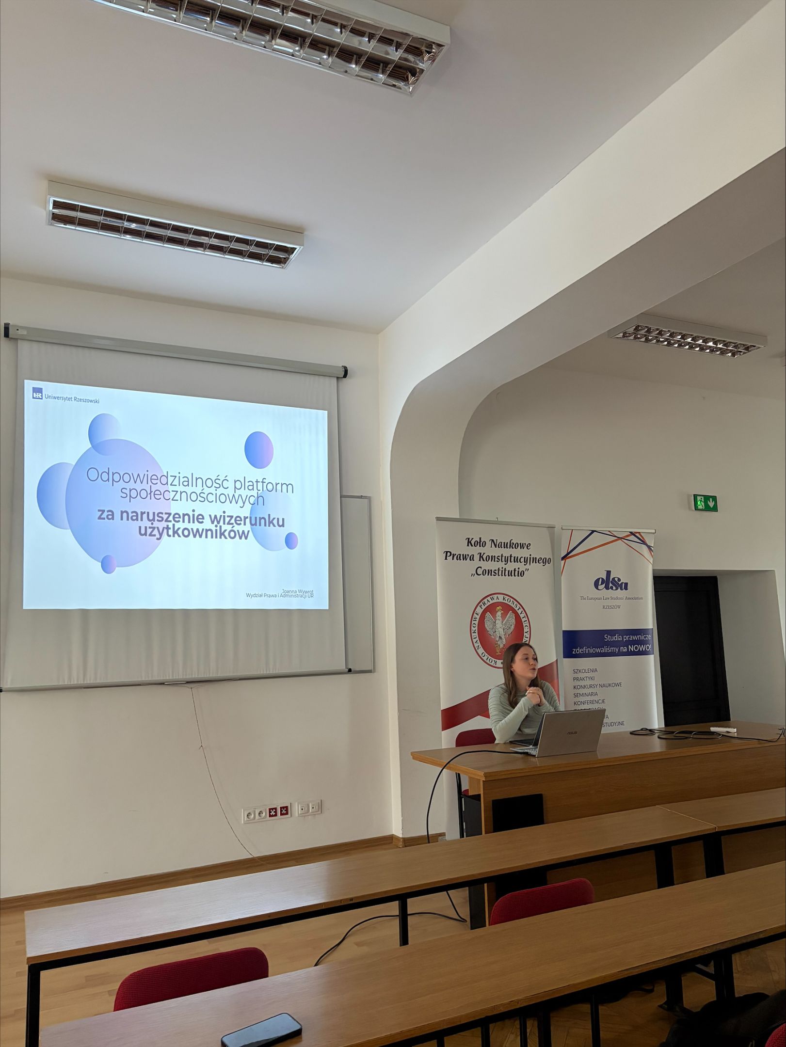 W dniu 9 kwietnia 2026 r. odbyło się Studenckie Seminarium Naukowe pt. „Status prawny i ochrona wizerunku osoby fizycznej w mediach społecznościowych w świetle konstytucyjnej ochrony dóbr osobistych oraz prawa do prywatności”, zorganizowane przez Koło Naukowe Prawa Konstytucyjnego oraz ELSA Rzeszów.