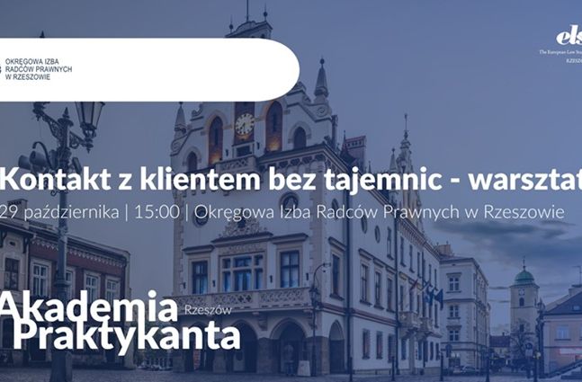 Europejskie Stowarzyszenie Studentów Prawa ELSA Rzeszów serdecznie zaprasza studentów do udziału w wydarzeniu pt. "Kontakt z klientem bez tajemnic", które odbędzie się 29.10.2025 r. o godz. 15:00 w siedzibie Okręgowej Izby Radców Prawnych w Rzeszowie.