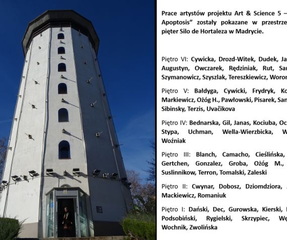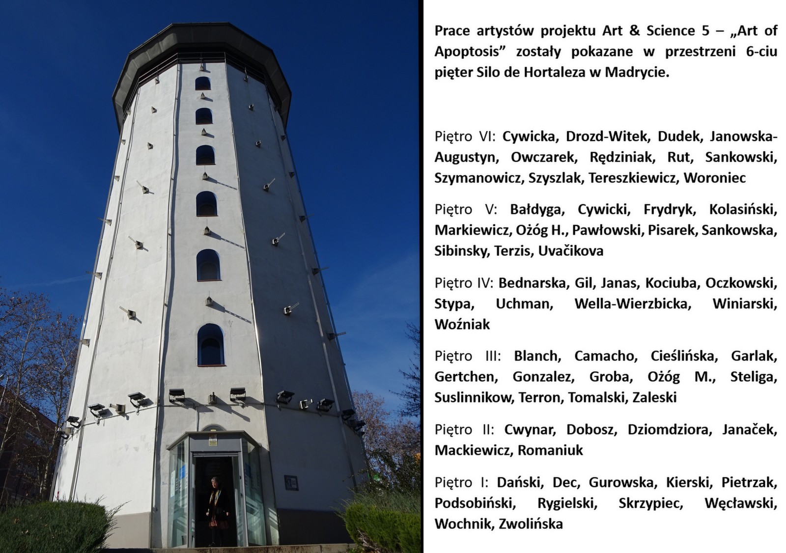 W dniach 14-31 stycznia 2024 roku w Silo de Hortaleza w Madrycie trwała pierwsza hiszpańska odsłona projektu Art & Science 5 – „Art of Apoptosis”. Uroczysty midisaż otworzył David Pérez García – Concejal-presidente de la Junta Municipal de Hortaleza, który podkreślił wartość współpracy kulturalno-artystycznej Polski i Hiszpanii. Wśród wielu zaproszonych gości byli m.in.: Angel Santiago Sáez (Jefatura Unidad Servicios Culturales – Ayuntamiento de Madrid), Javier Agudin Campos (del Silo de Hortaleza), a także profesorowie i wykładowcy z Uniwersytetu Complutense – uczestnicy projektu: Elena Blanch, Pedro Terron, Margarita Gonzalez, Iria Groba i Rigoberto Camacho.